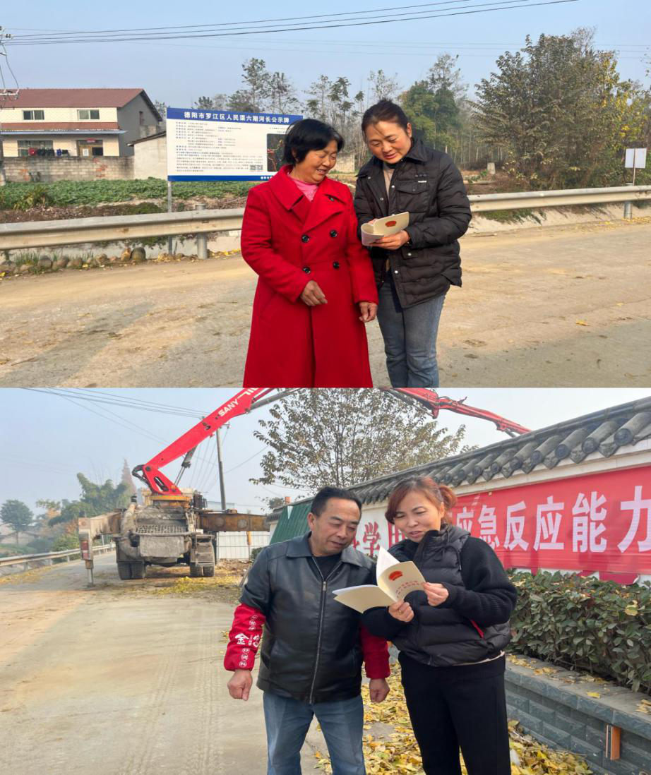 活动中,旌阳站职工在站属工段附近村落一一走访宣传,向村民朋友重点宣传宪法、民法典等法律知识,并重点讲解了宪法的重要意义和依宪治国、开展法治建设的重要性,引导广大群众牢固树立宪法至上意识,增强宪法观念,自觉维护宪法尊严,进一步拓宽灌区法治建设合作领域,推进各部门法治合作走深走实。