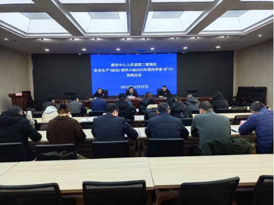 会议传达学习水利部安全生产领导小组扩大会议精神,省政府安全领域突出问题和作风不实、欺上瞒下等问题专项整治暨今冬明春安全工作推进电视电话会议精神,贯彻学习省水利厅、都江堰水利发展中心关于岁末年初安全生产和冬春消防安全防范工作要求。会议作了人民渠第二管理处2023年第4季度安全生产风险分析评估报告,总结了2023年安全生产工作,安排部署了2024年安全生产工作任务。