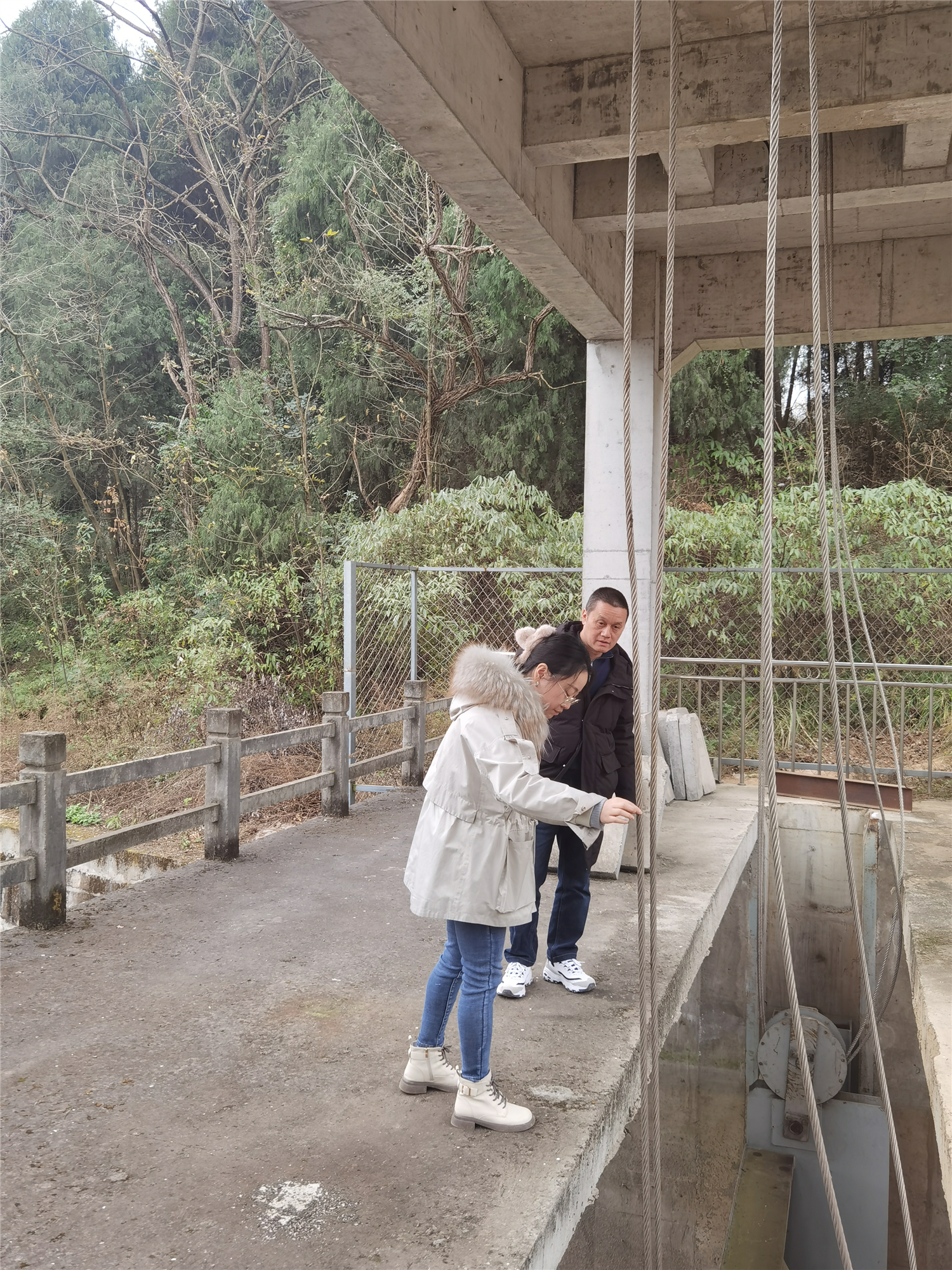 检查组一行查看了人民渠六、七期干渠各类水工建筑物,围绕闸房设施设备、防汛物资仓库、备用发电机、病险隐患点、地质灾害点等关键部位的运行情况及职工用气用电安全情况逐个排查。对成绵高速公司更换桥梁支座、中石化管道跨越七期干渠等重点涉水建设项目及“十四五”续建配套与现代化改造项目进行了重点检查。现场询问了工段职工生产生活情况并查阅了安全生产工作台账资料。