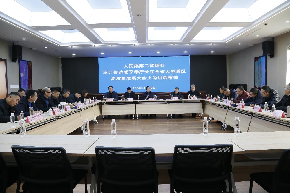 1月18日下午,人民渠第二管理处召开专题视频会议,传达郭亨孝厅长在全省大型灌区高质量发展大会上的讲话精神,在家处领导、全体组长及以上中层干部,部分职工代表参加会议,会议由党委书记、处长罗厚攀主持。