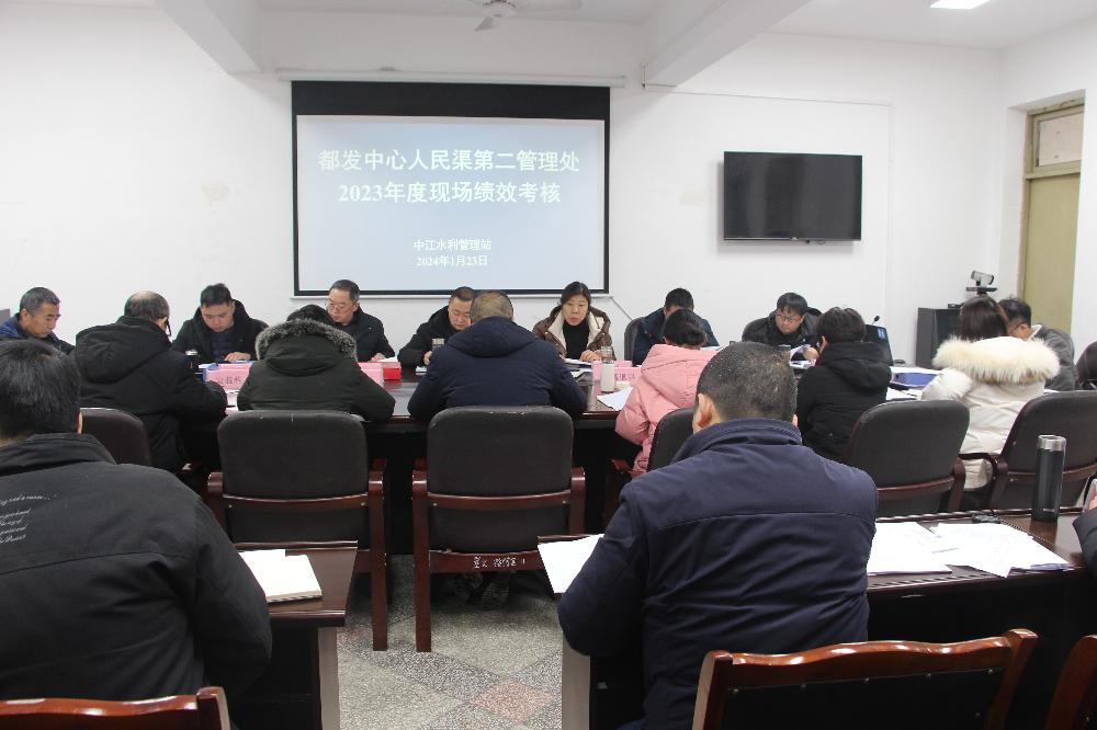 1月23日,都发中心人民渠第二管理处党委副书记周李军带领绩效考核组,对中江站进行2023年度绩效考核现场考评。会议由周李军主持,站班子成员、相关股室(工段)负责人参加考评。