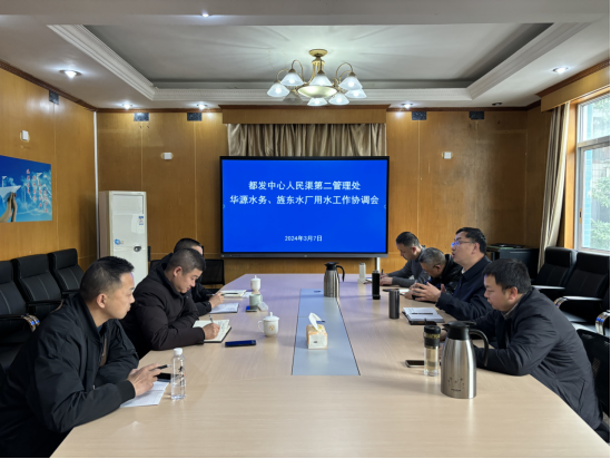 为充分发挥一体化管水调水机制优势,进一步提升灌区用水服务质量,全力推进生活供水“从有向优”转变。3月7日,人民渠第二管理处与德阳华源水务投资有限公司、旌东水厂召开用水工作协调会,共议蓄水保障、用水调度、水质改善等相关事宜。人民渠第二管理处党委书记、处长罗厚攀参加会议。