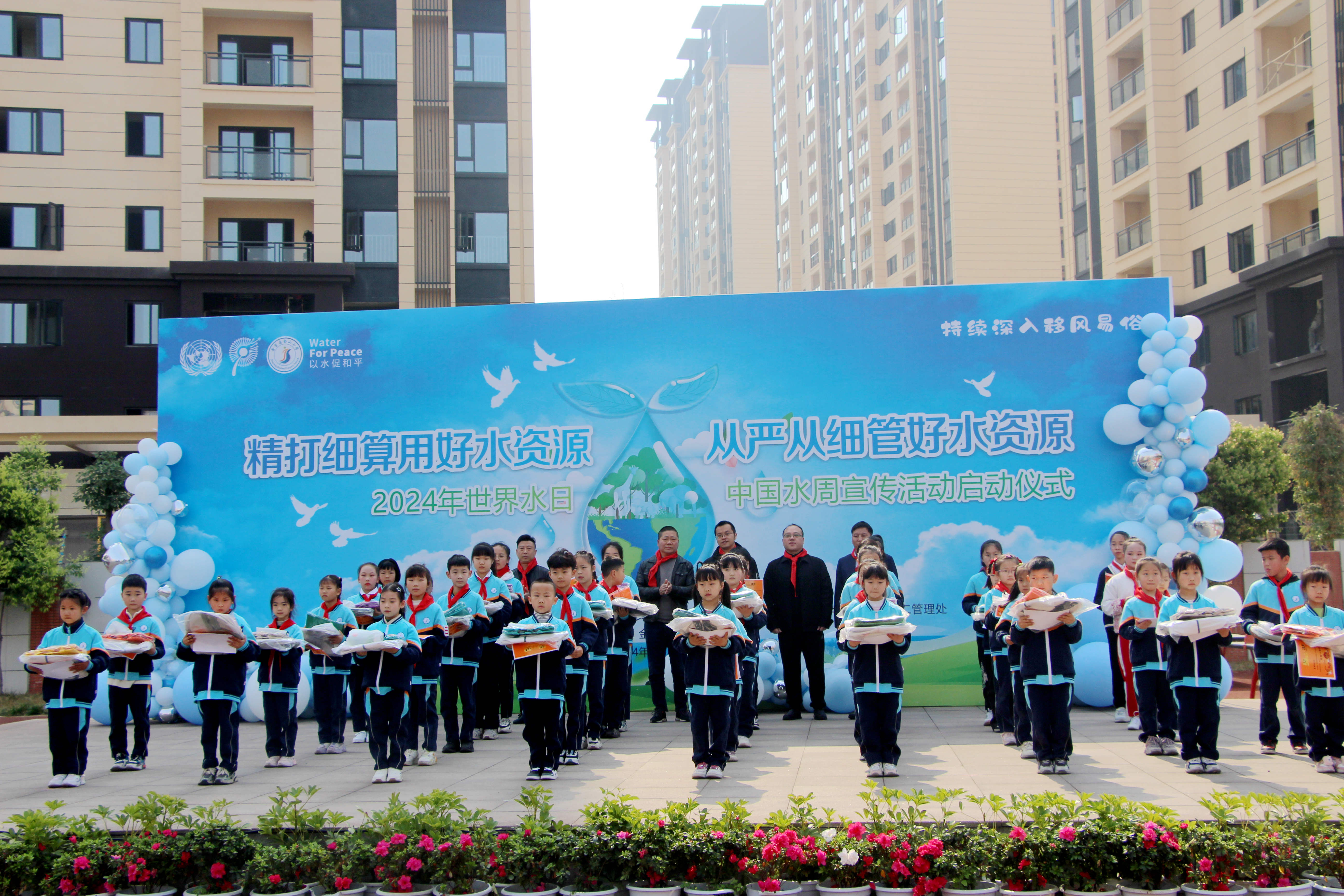 中江水利管理站携手金堂县水务局、教育局在金山小学举行“世界水日”“中国水周”宣传活动启动仪式。启动仪式围绕“精打细算用好水资源,从严从细管好水资源”主题开展系列宣传活动,并向大家发出倡议:呼吁广大师生关注水、爱护水,坚持可持续发展理念,把节水、节能工作摆到突出位置,在日常生活中注意节约用水,养成节水、护水的健康生活方式,推广简约适度、绿色低碳、文明健康的生活理念。