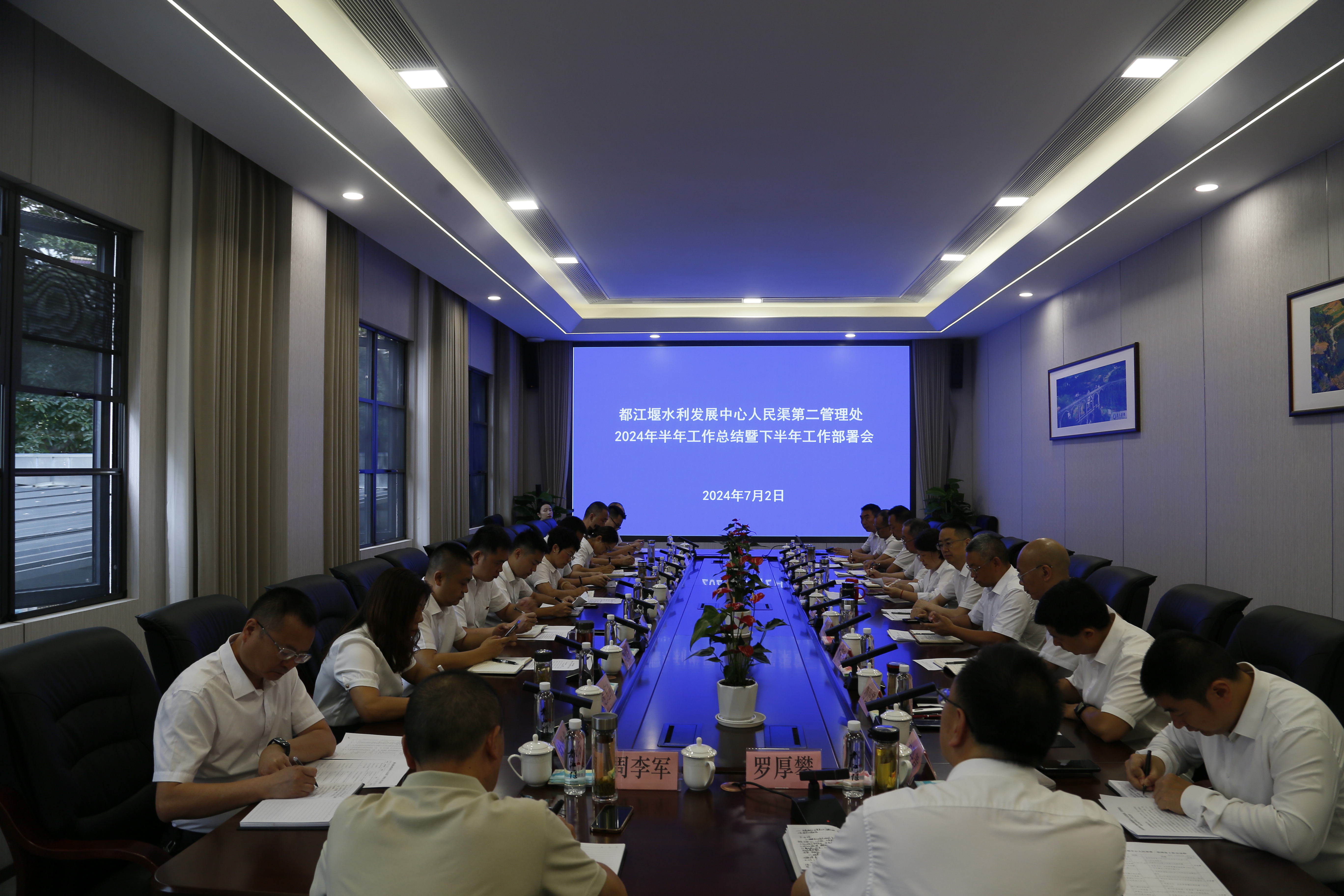 为有效总结上半年工作,扎实推进下半年各项重点工作有序、有力、有效开展,7月2日,都江堰水利发展中心人民渠第二管理处召开2024半年工作总结暨下半年工作部署会。在家处领导、机关各科室、基层各单位负责人参加会议,党委书记、处长罗厚攀主持会议。