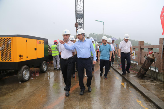 凌先得一行在项目现场听取了施工单位对项目施工的组织安排,在主坝上实地查看了项目建设推进情况,在鲁班水利管理站召开鲁班水库除险加固工程推进会。