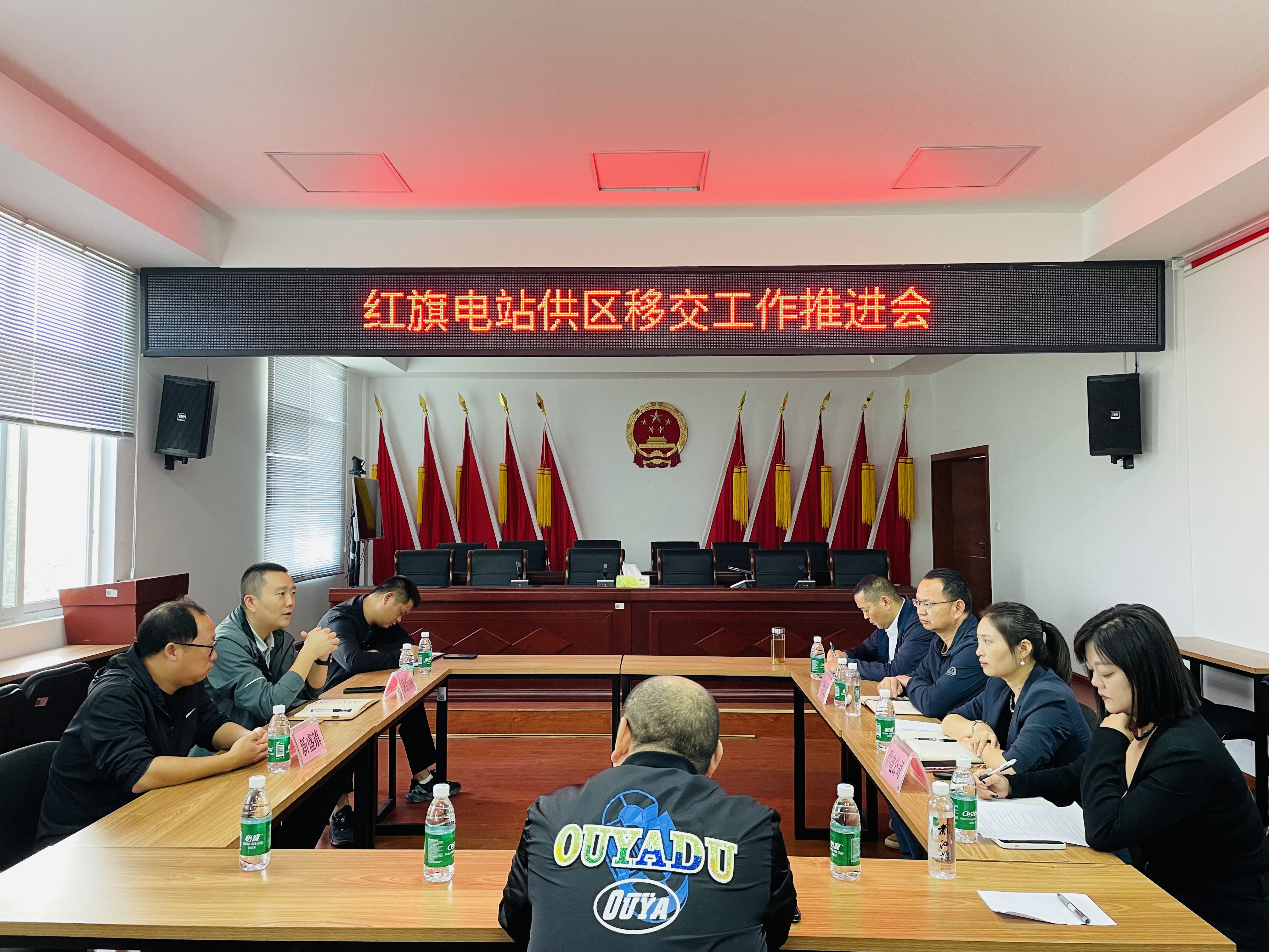 为加快推进红旗车间直供区移交工作,10月15日召开红旗电站直供区移交工作推进会。会议由德阳市罗江区经济和信息化局副局长荣传伟主持,新盛镇人民政府,国网罗江区供电公司,人民渠第二管理处综经科、红旗鲁联中心站,直供区所涉企业德阳市鑫鸿玻纤制品有限责任公司相关人员参加会议。