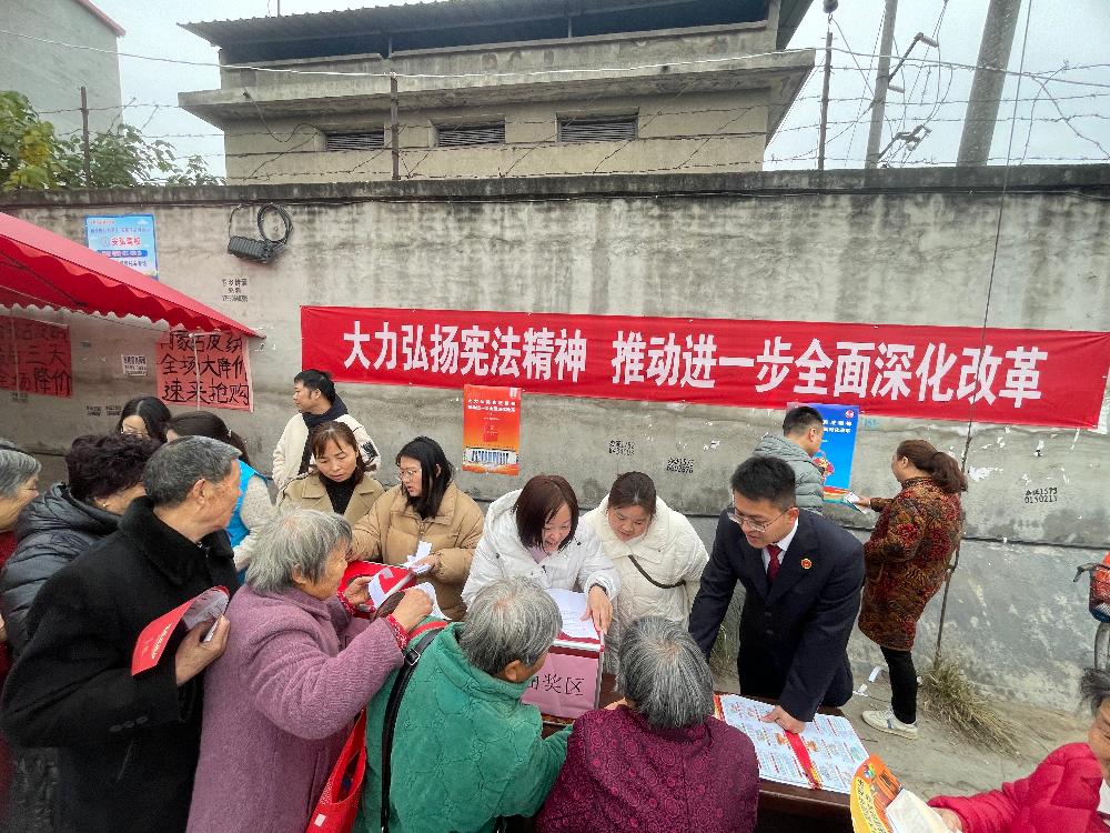 此次活动通过悬挂宣传横幅、发放宣传资料、宪法知识答题竞赛等方式,向当地群众讲解宪法相关知识及其重要性,吸引大量群众参与。工作人员结合日常生活,深入浅出地向当地群众宣传讲解《中华人民共和国宪法》的核心内容,帮助群众理解宪法精神,鼓励他们在日常生活中积极运用宪法知识,以实际行动践行宪法精神,共同维护国家的法治秩序。本次宣传共发放资料500余份,覆盖人口约500余人,宣传效果达到预期目标,现场氛围火热,深受当地群众好评。
