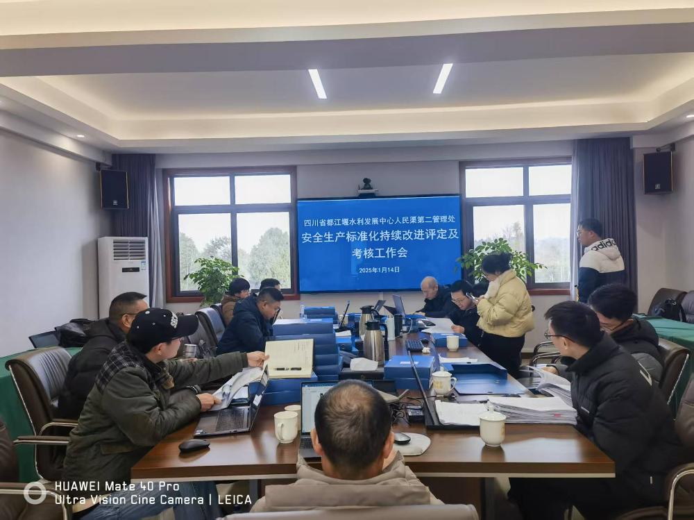 为持续巩固水利安全生产标准化一级达标成果,着力夯实安全生产基础,1月14日,都发中心组织对人民渠第二管理处安全生产标准化持续改进进行评定和考核。本次评定和考核由都发中心安监处带队,灌区各管理处代表组成考核组。