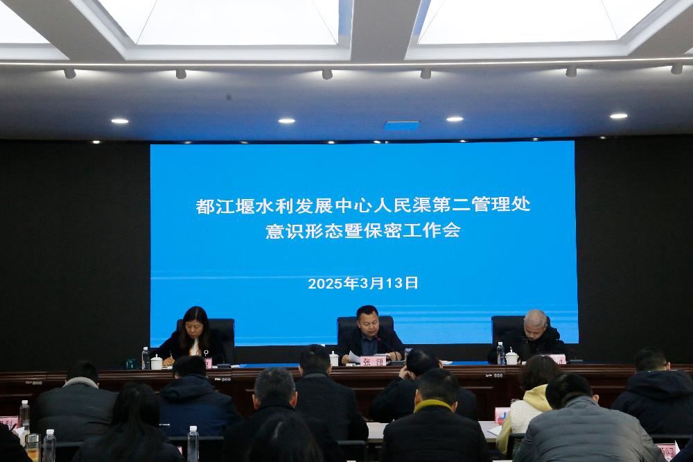 为进一步加强意识形态工作,增强网络安全意识,推动保密工作措施落实,3月13日,人民渠第二管理处召开2025年意识形态暨保密工作会,会议由党委委员、副处长张涌主持。