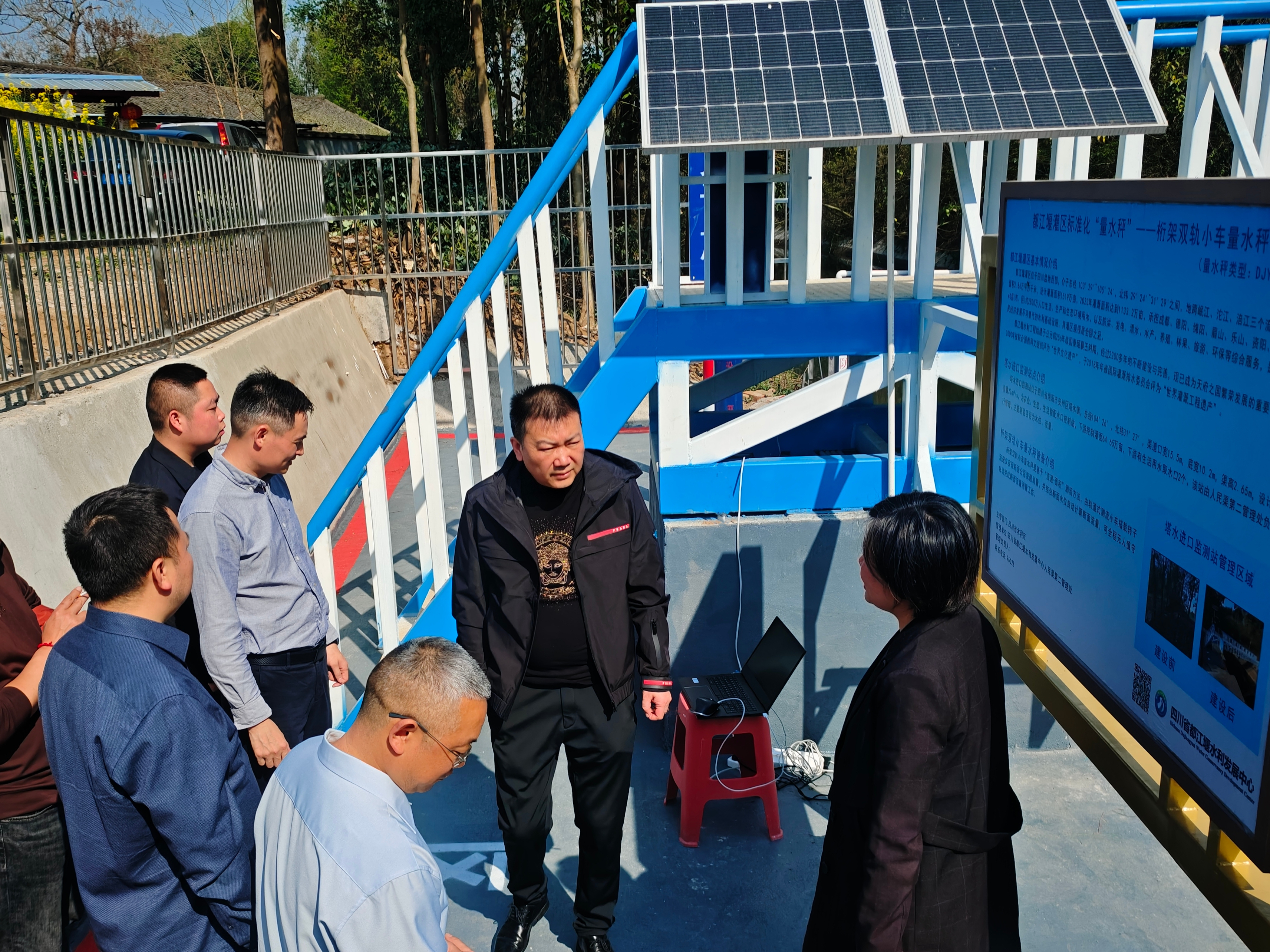 为全面提升水文技术支撑能力,加快推进水文现代化建设,3月26日,省都江堰水利发展中心党委委员、副主任吴鉴率队前往人民渠六期罗江片区,对标准化“量水秤”体系试点建设工作展开调研。人民渠第二管理处副处长张涌以及供水管理科、罗江水利管理站相关负责人陪同调研。