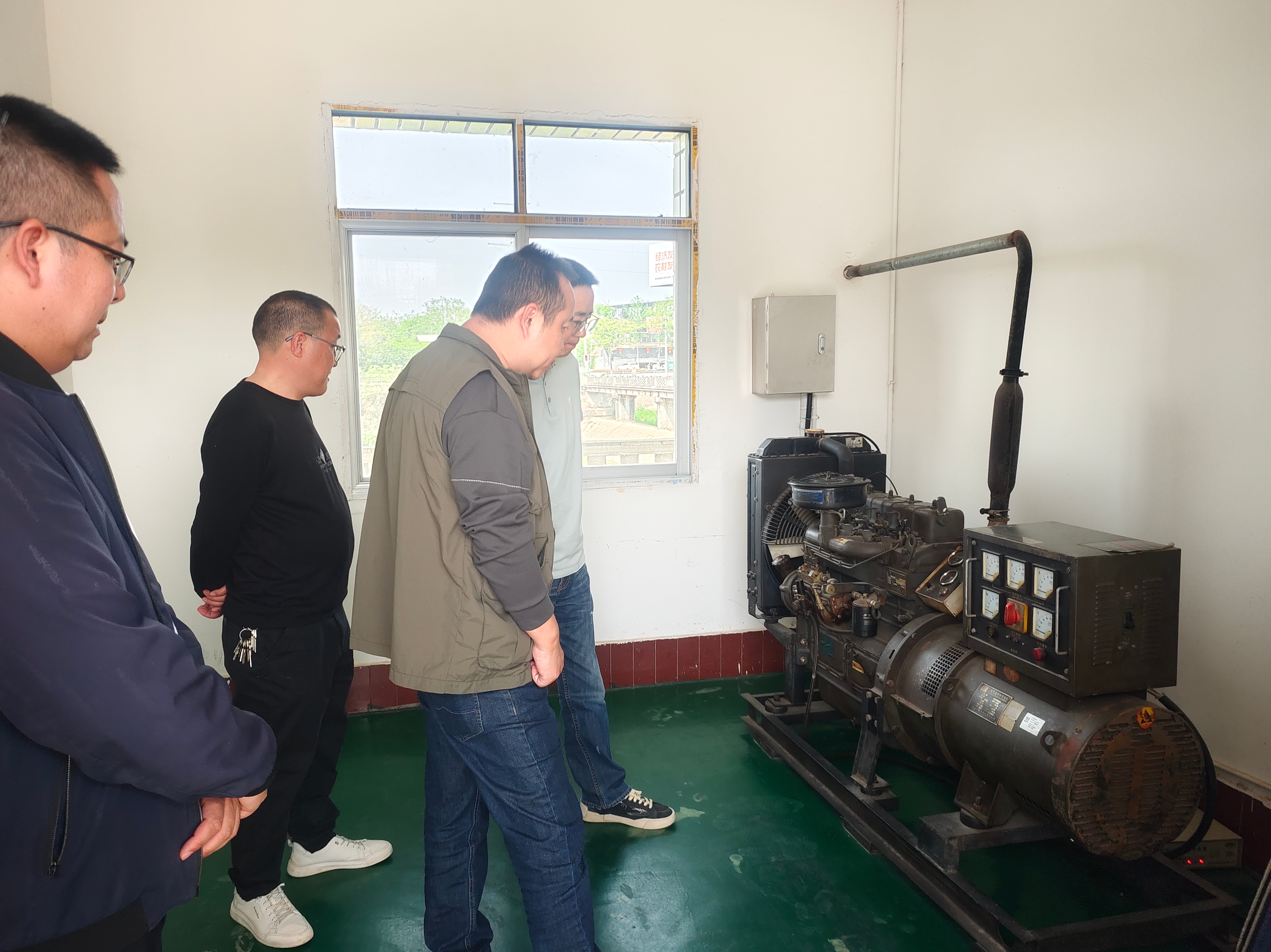 在野坝堰水利枢纽处,检查组一行依次查看了启闭设备的运作情况、备用发电设备的检修维护(维修养护)工作、消防设施的设置情况以及防汛物资的储备情况等,并且针对堤段的病险工程隐患进行了现场研判分析,针对暴雨天气来水预警、泄洪防御措施等方面作出专项部署安排。