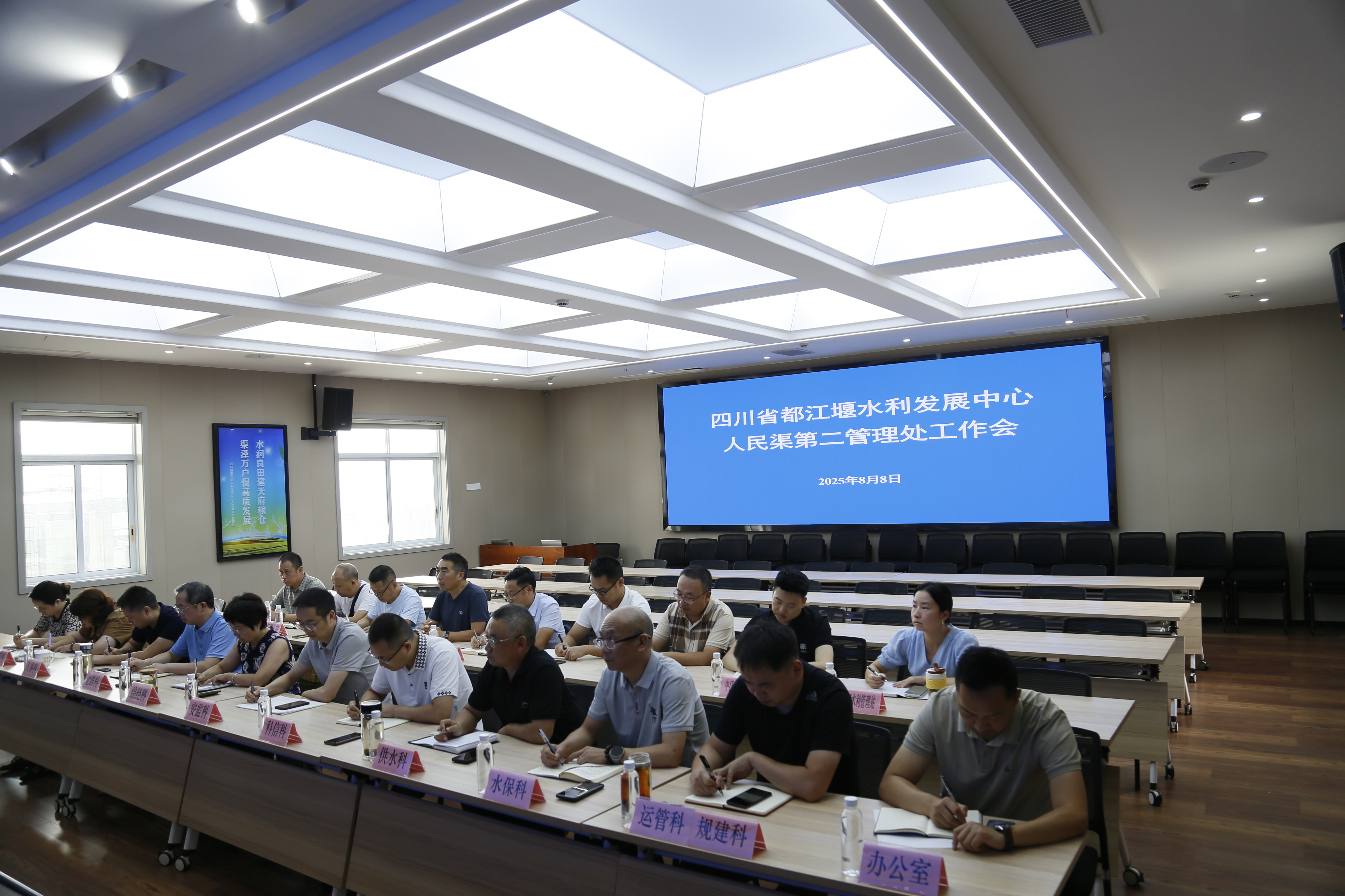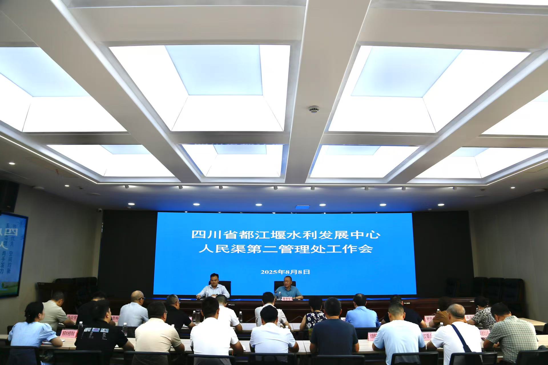 8月8日,都发中心人民渠第二管理处组织召开工作会,专题传达学习董里厅长调研人民渠第二管理处指示精神,研究部署贯彻落实工作。会议由党委副书记周李军主持,处领导、机关各科室、基层各站、江渠公司、建设公司主要负责人参加会议。