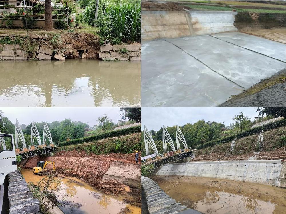面对干渠长期运行导致的边坡垮塌、渗漏及杂物淤积等问题,罗江水利管理站全员投入、昼夜奋战,放弃周末休息,坚守施工一线。通过分段整治、梯次推进的策略,灵活运用人工清理与机械挖掘相结合的手段,高效完成清淤除杂任务,并科学处置淤泥,杜绝二次污染。同步开展边坡除草与排障施工,提升渠道整洁度与安全系数;对水毁段实施专项修复,采用重力式挡墙强化结构稳定性,提升了水利工程耐久性与输水效能。整个施工期间采用“每日巡查+驻点蹲守+影像记录”的监督模式,全程跟踪施工质量与进度,确保岁修工作高效、安全、规范推进。