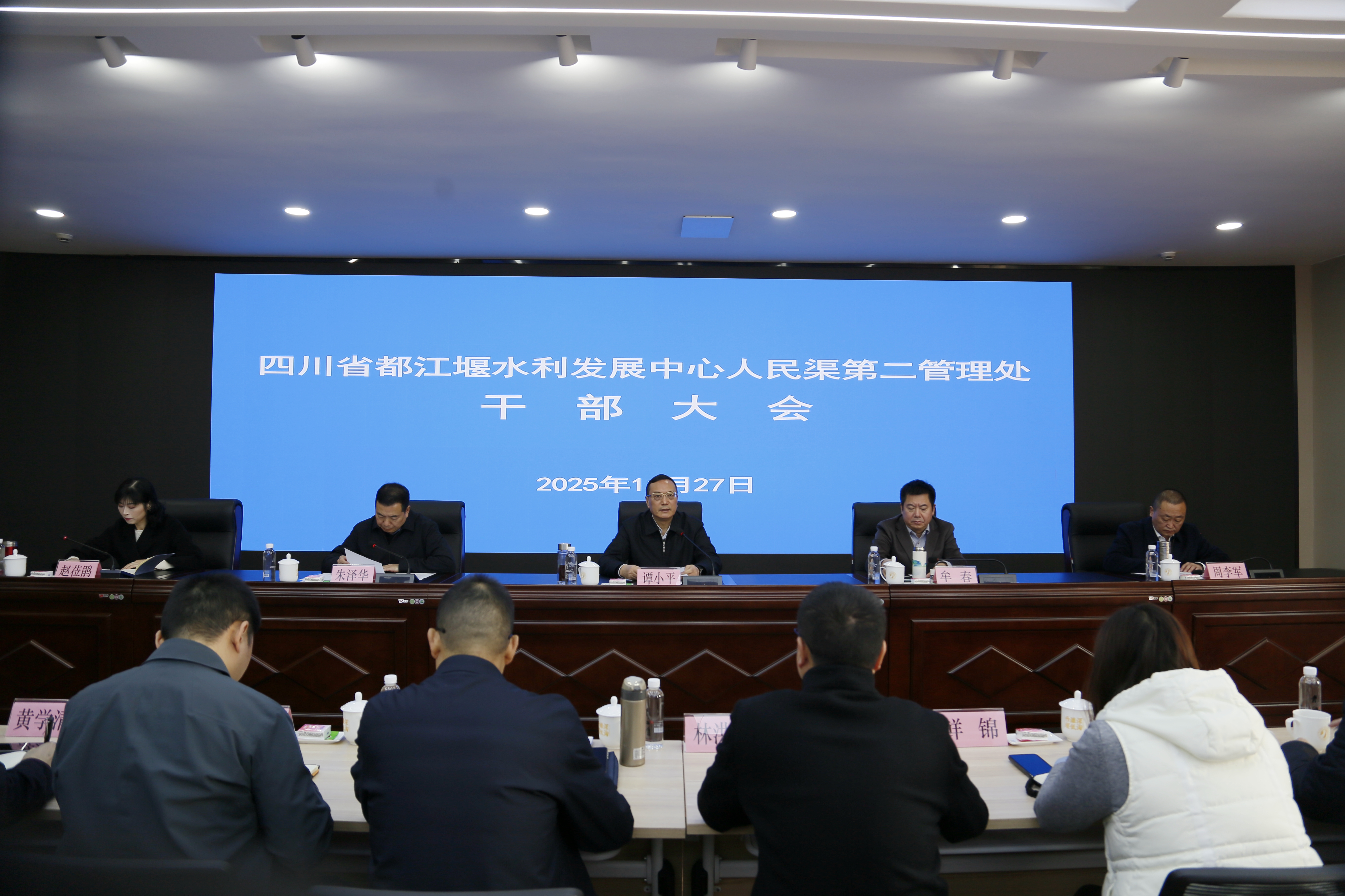 11月27日,四川省都江堰水利发展中心人民渠第二管理处召开干部大会,宣布四川省水利厅党组关于周李军同志任人民渠第二管理处党委书记、处长,赵莅鹃同志任人民渠第二管理处党委委员、副处长的决定。