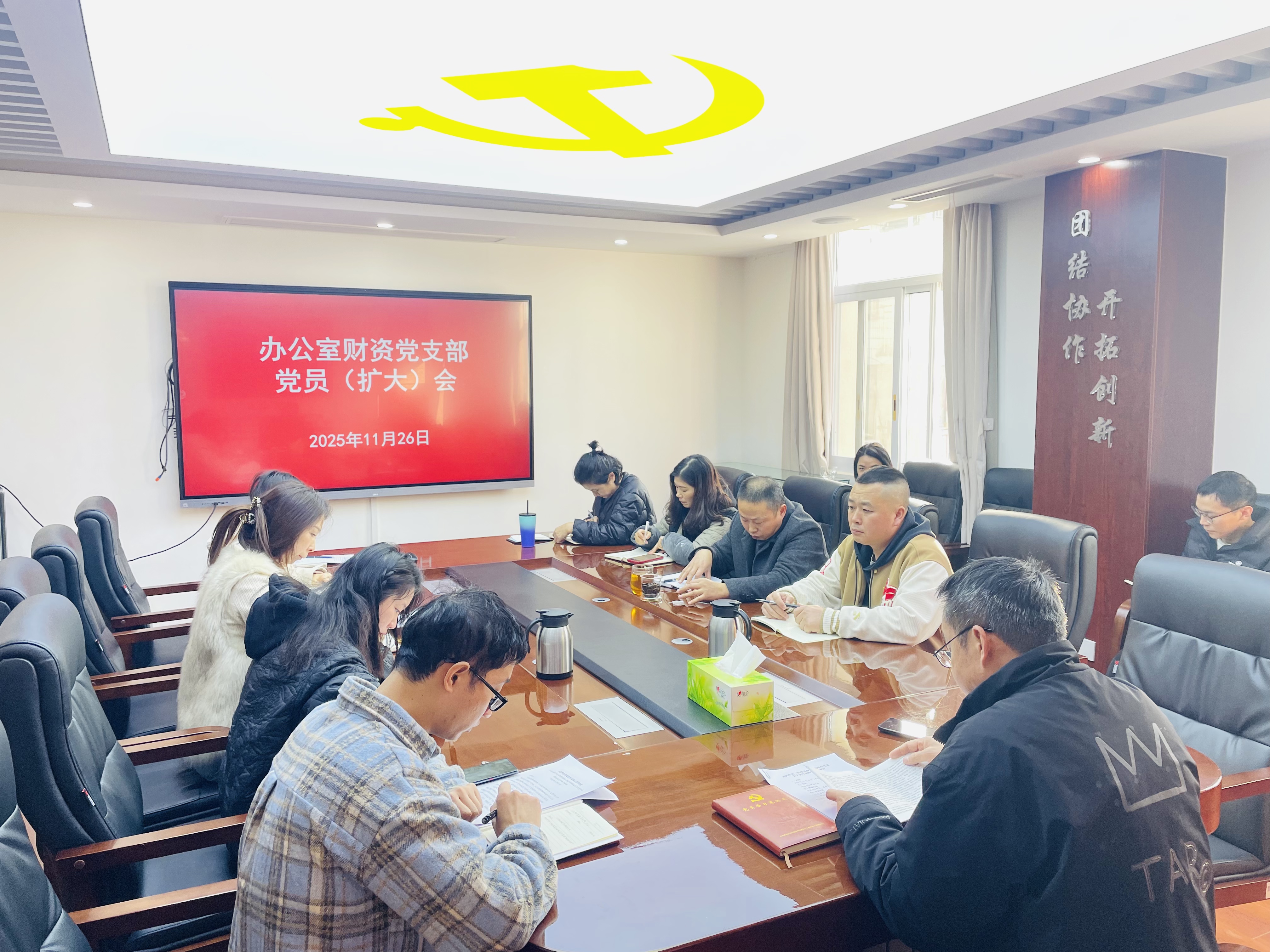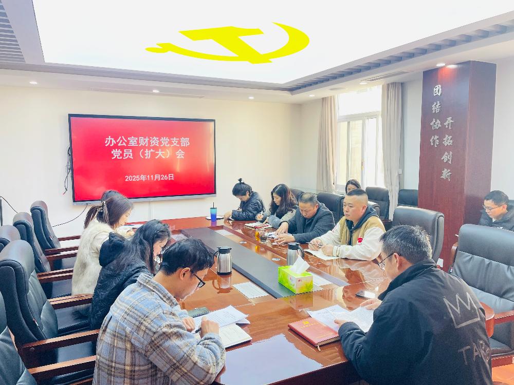 为深入学习贯彻党的二十届四中全会精神,持续加强党员教育管理工作,办公室财资党支部于11月26日在处机关四楼会议室召开党员(扩大)会议。