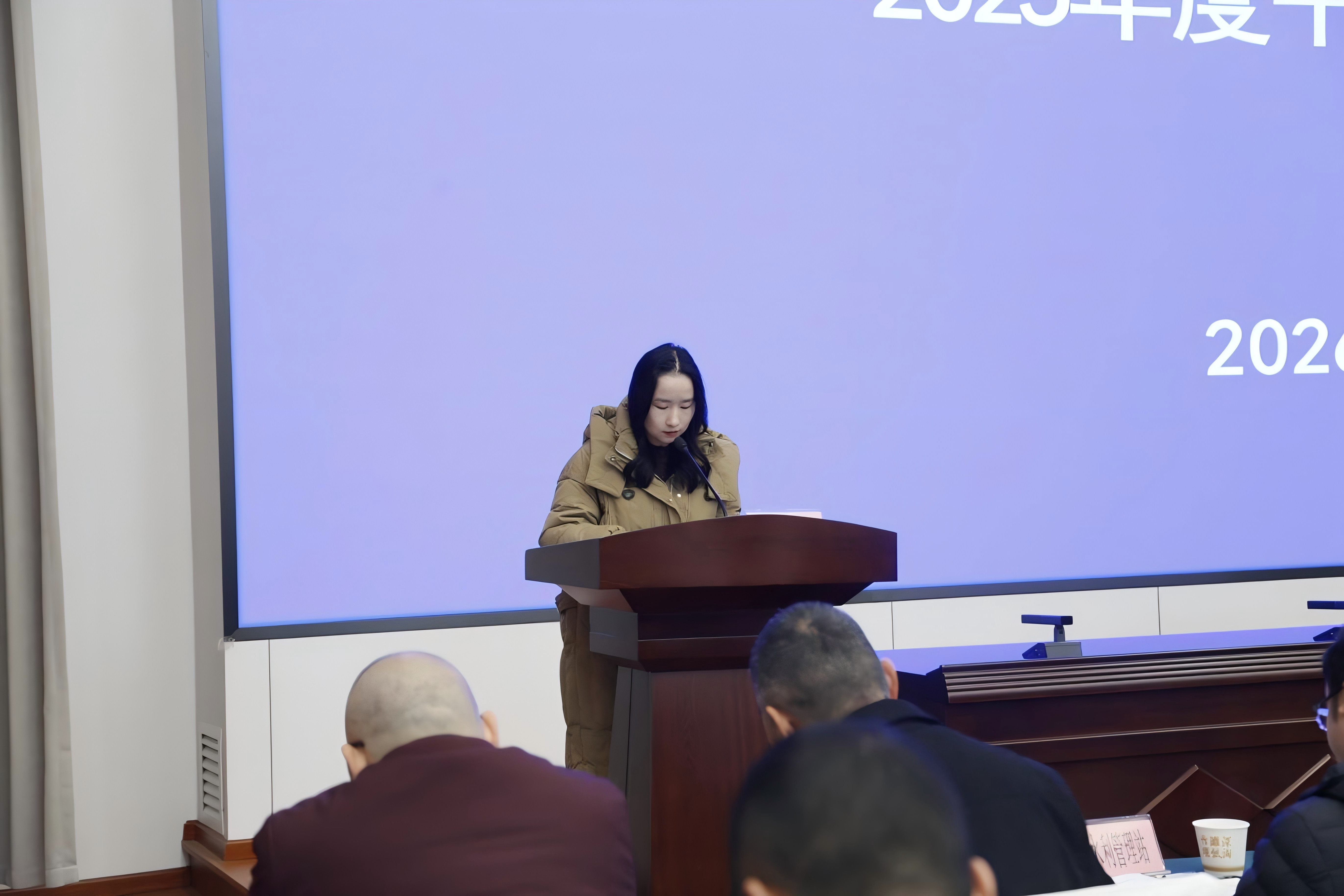 中层干部述职环节中,4名中层干部代表依次作现场述职,围绕2025年度岗位职责落实、重点工作攻坚、履职成效亮点、存在短板不足及下一步改进举措等方面,进行全面梳理、客观汇报、深刻剖析。分管(联系)领导逐一进行点评,既充分肯定工作中的实绩与亮点,也精准指出存在的问题与不足,并针对性提出改进方向,为干部成长赋能引路。其余中层干部以书面形式提交述职报告,实现现场述职与书面述职有机结合,全面、真实、客观展现中层干部履职实绩,为管理处改革发展凝聚奋进力量。