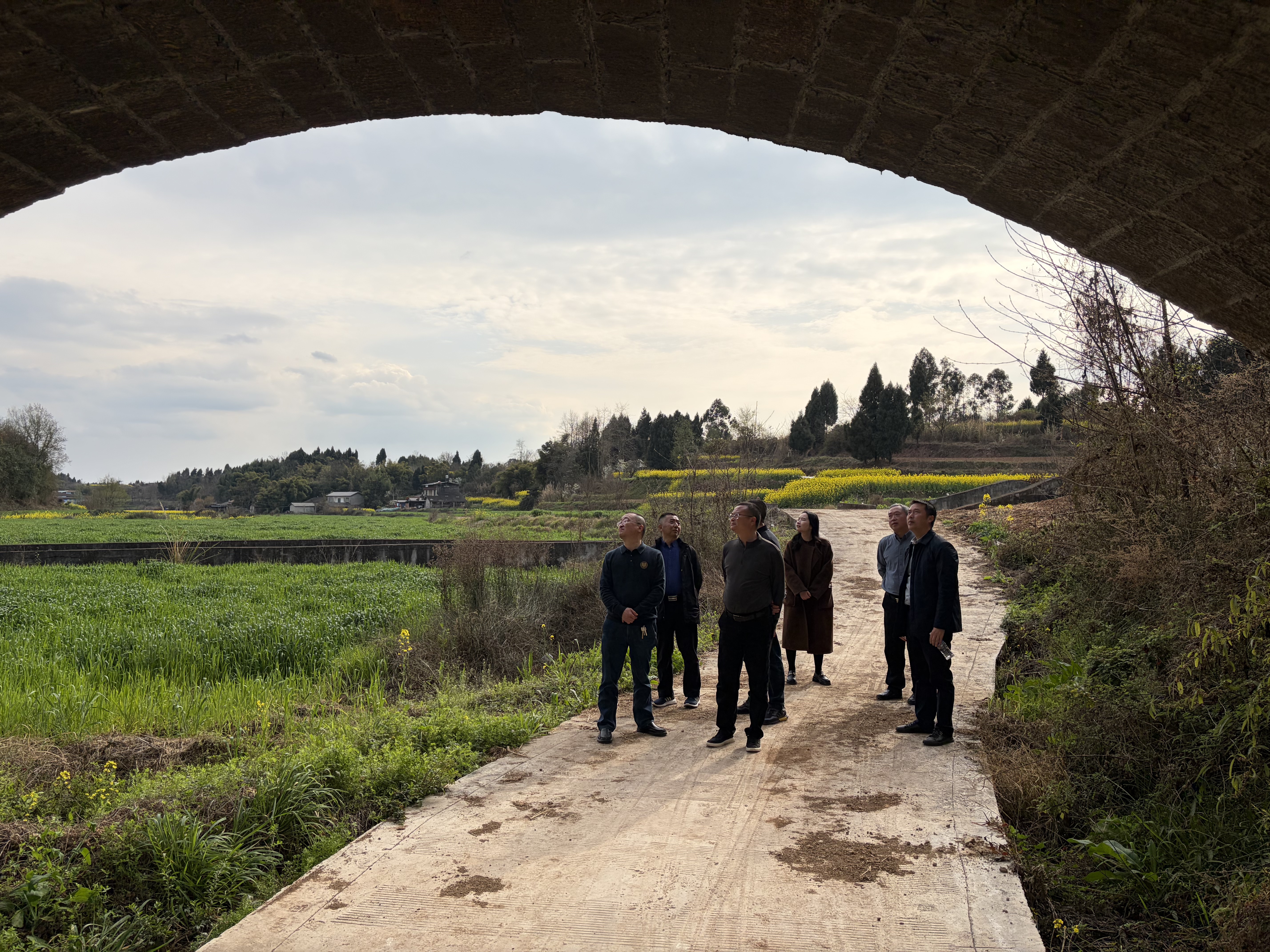 调研组一行首先前往人民渠七期干渠和四号渡槽,实地查看干渠输水运行、设施管护情况,详细了解渡槽结构、日常管护及存在的隐患问题。重点围绕四号渡槽被地方纳入不可移动文物后,与四川都江堰灌区现代化改造工程在推进过程中存在的矛盾展开现场研讨。周李军强调,要正确处理好文物保护与灌区现代化改造间的关系,在确保历史文化遗产得到妥善保护的前提下,立足灌区长远发展,积极寻求科学合理的整治方案。他要求旌阳水利管理站及相关科室要加强与文物部门沟通协调,深入研究《中华人民共和国文物保护法》等法律规定,提出兼顾文物保护与功能提升的优化建议,为后期决策提供可靠依据。