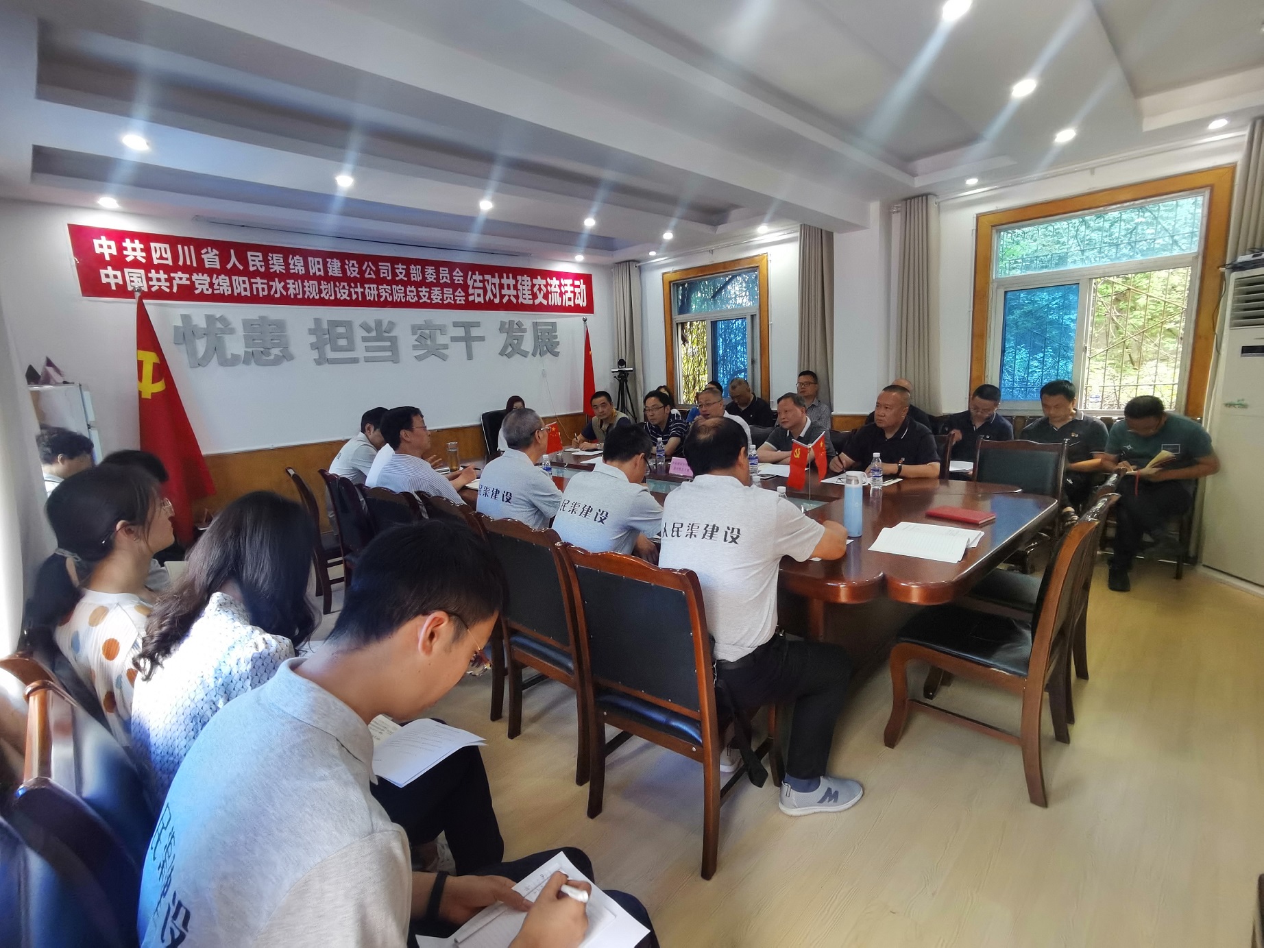 为全面提高党支部建设水平,创新支部工作方式,在十四五规划开局中谋划企业经营工作,以党建促进企业业务发展,5月13日下午,建设公司党支部和绵阳市水利规划设计院党总支开展了结对共建交流活动,双方全体党员参加会议,会议由杨奎书记主持,管理处杨刚总工、党办李万军主任参会指导。