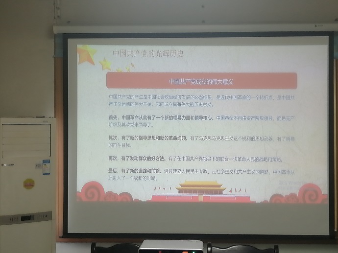 本次学习会的主要内容为:通过PPT学习新民主主义革命时期1919年-1949年期间党史大事,回顾中国共产党的诞生以及在革命斗争中不断发展壮大的伟大历史、学习《习近平论中国共产党党史》重要理论和分享党史小故事、谈学习党史心得。