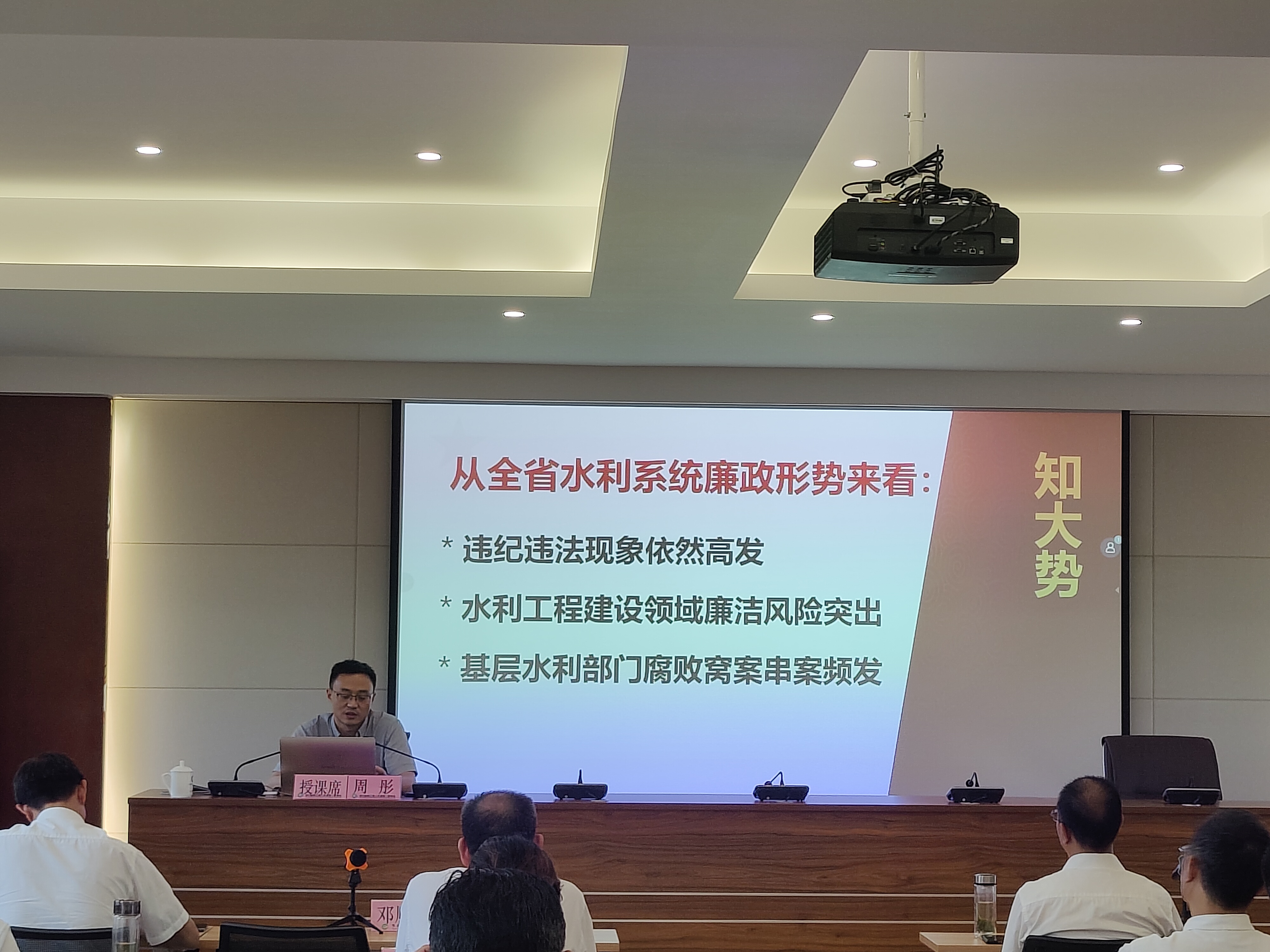 会议还邀请驻厅纪检组副组长周彤到会进行廉政教育讲座。周彤副组长以“知大势、明责任、守底线”为题,结合具体案例,对当前廉政建设形势、反腐倡廉、正风肃纪等政策进行了深入浅出的解读,教育党员干部要加强学习、调整心态、勤于修身,算好人生账,准确把握两个责任,抓好两个责任的落实,筑牢拒腐防变的思想防线。