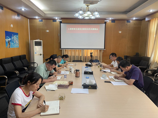 9月10日工程管理党支部召开党史学习教育及作风整顿会,贯彻落实处党史学习教育及作风整顿党委扩大会议精神,党支部全体党员参加。