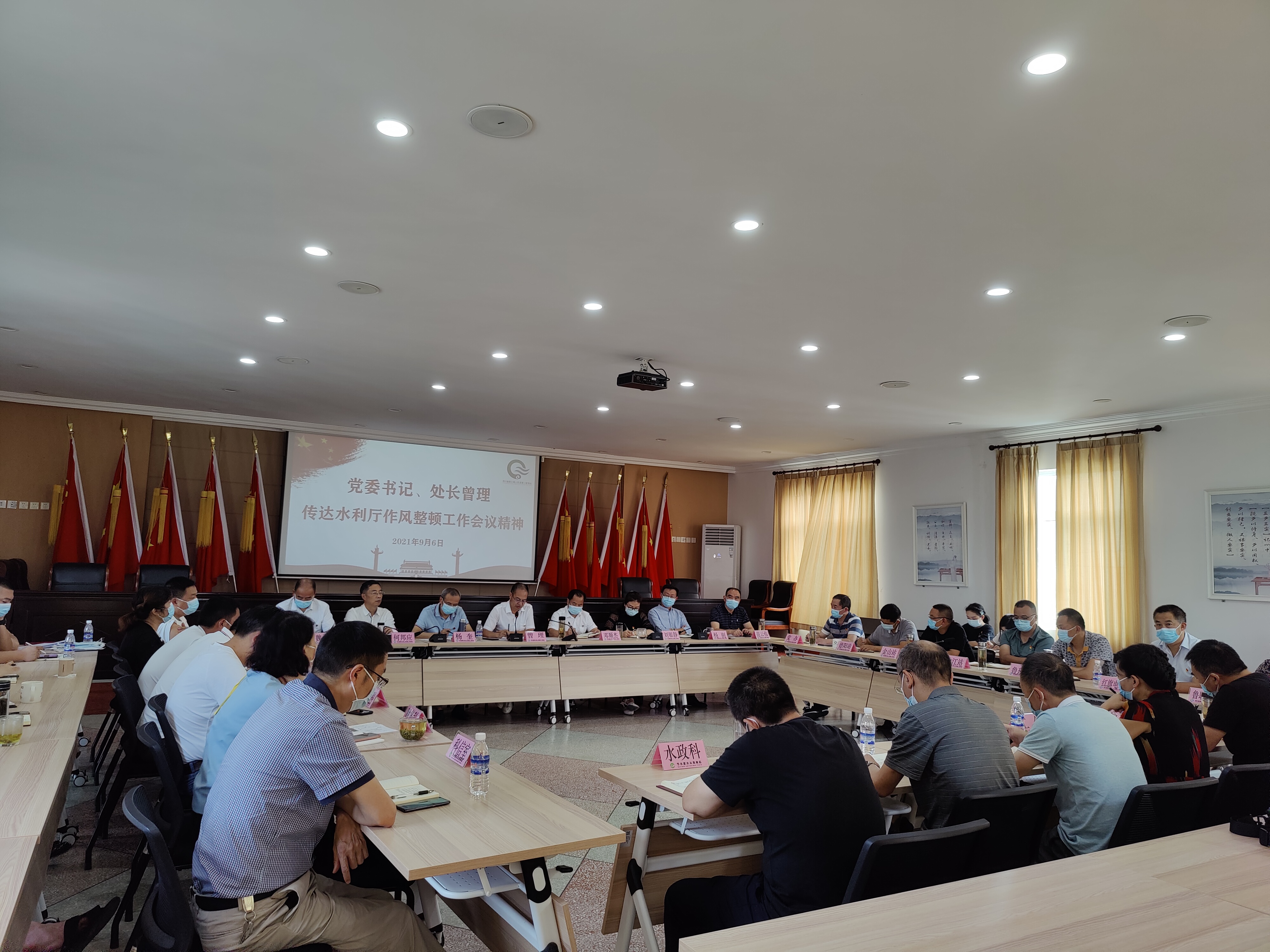会议传达了厅党组书记、厅长郭亨孝9月3日学习“七一”重要讲话《传承伟大建党精神锤炼优良作风品质不断推动水利事业发展》专题党课报告精神,通报了厅系统作风整顿整体情况,传达了持续深化作风整顿的工作要求。