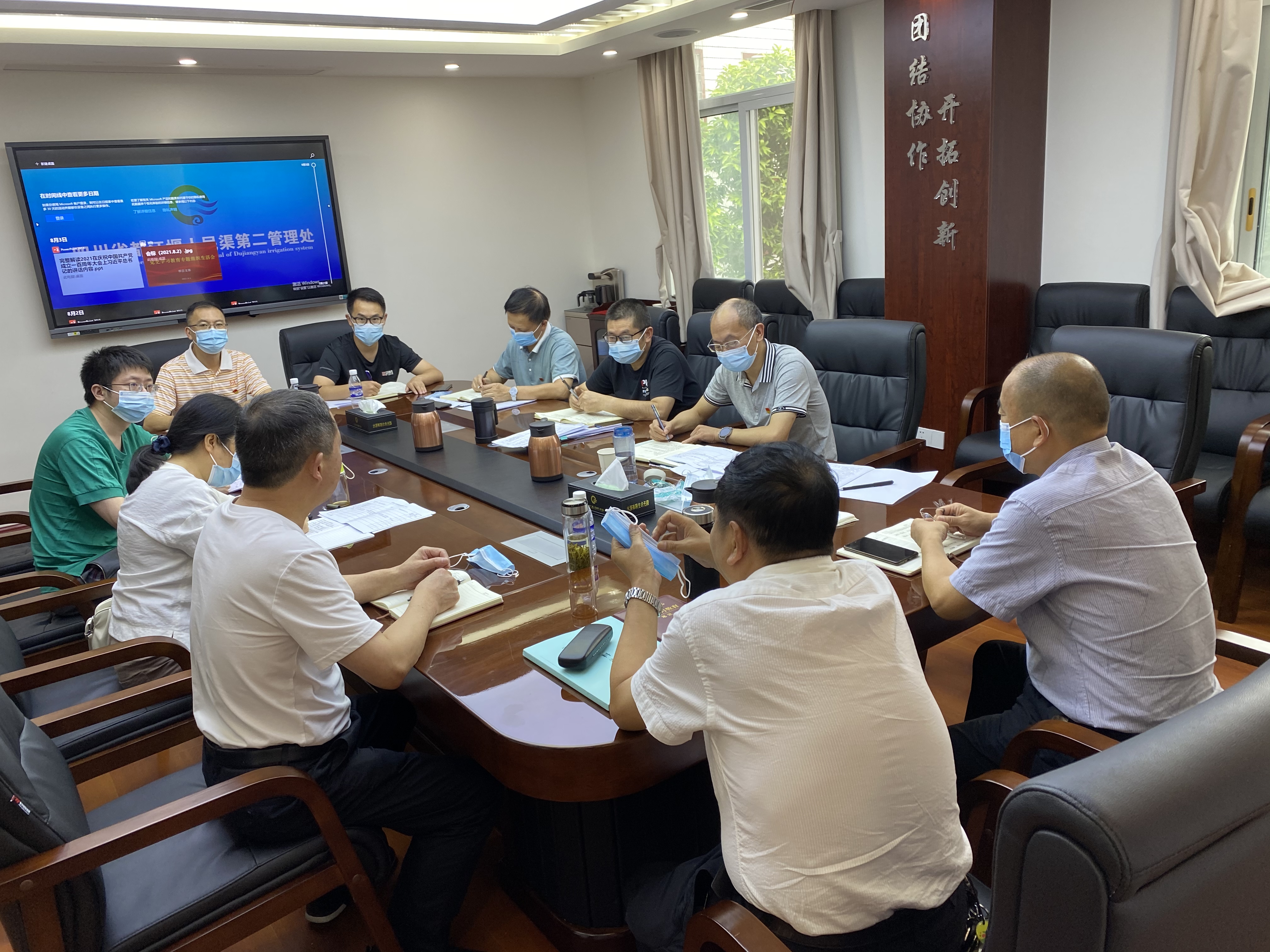 会上,支部书记李祖荣及副书记陈俊佛组织学习了习近平总书记在庆祝中国共产党成立100周年大会上的重要讲话;学习传达省委十一届九次全会精神;学习传达处党委理论学习中心组第五次(扩大)学习会精神;学习水利厅党组书记、厅长郭亨孝在水利厅机关职工大会上的讲话;学习厅系统干部队伍作风整顿实施方案;传达7月20日人民渠二处贯彻落实郭亨孝厅长在厅机关职工大会上的讲话专题会精神;传达7月23日人民渠二处作风整顿动员会精神。