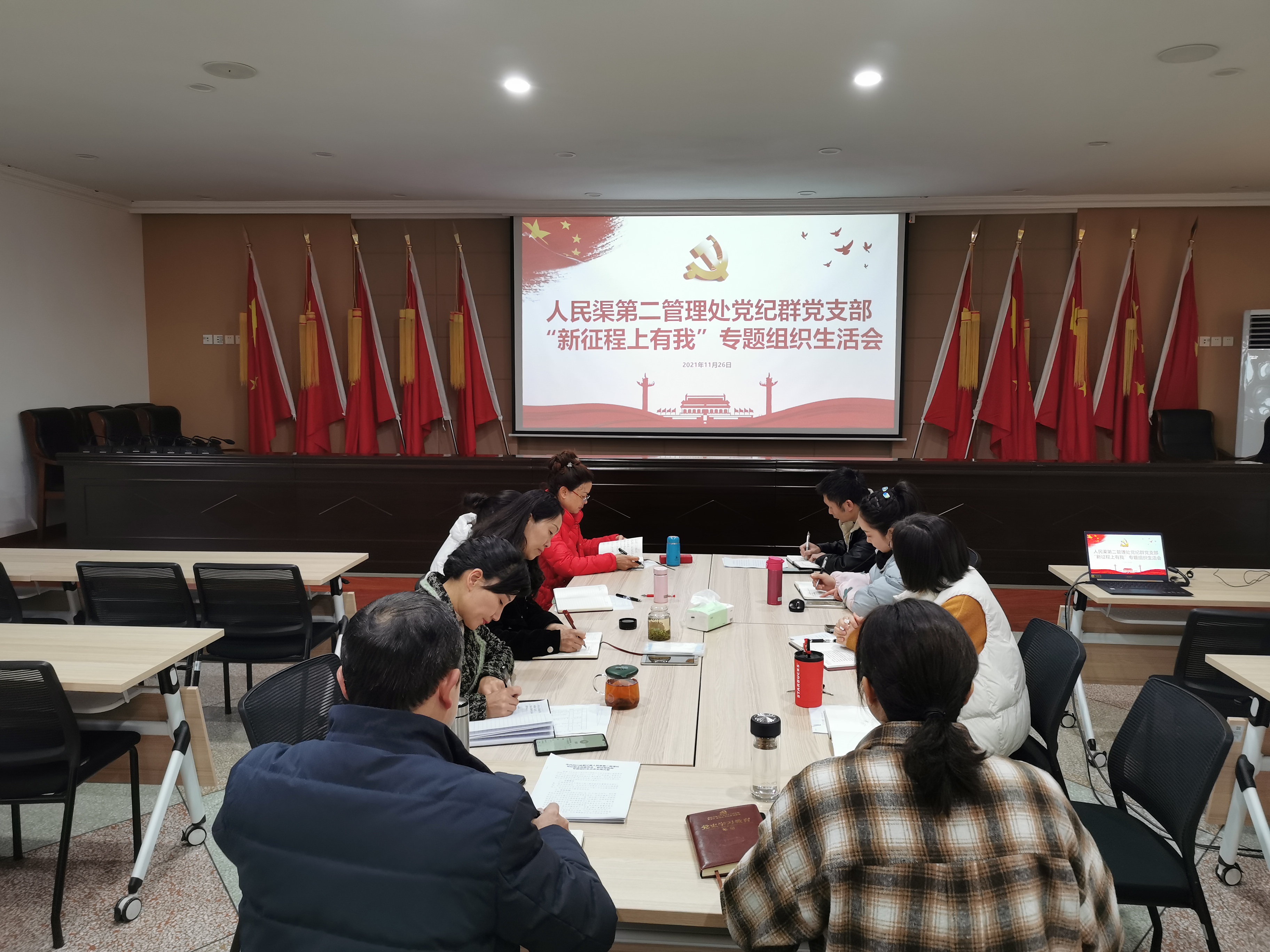 按照厅党组、处党委关于学习弘扬红旗渠精神的通知要求,人民渠第二管理处党纪群党支部认真筹备,周密部署,于11月26日组织开展了“新征程上有我”专题组织生活会。会议由党纪群党支部书记鲜锦主持,党支部全体党员、入党积极分子参加会议。