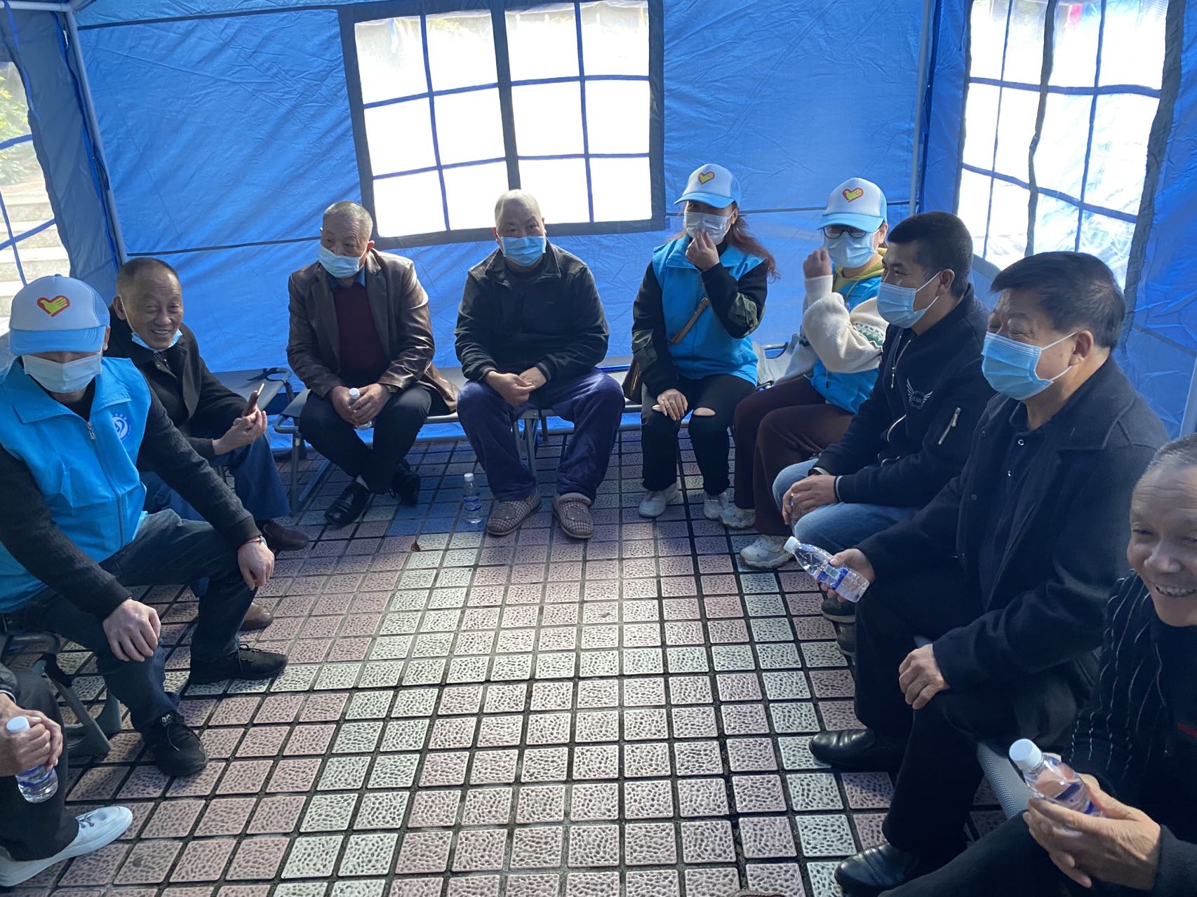 演练设定沂河社区三组房屋出现局部倒塌,周边居民急需转移。我支部成员立即响应,积极行动,组成志愿者小分队,有序、高效地将垮塌房屋周边居民群众转移至集中临时安置点并协助民兵应急分队搭建临时安置帐篷,发放救灾物资,做好受灾群众心理安抚工作,确保演练取得成功。