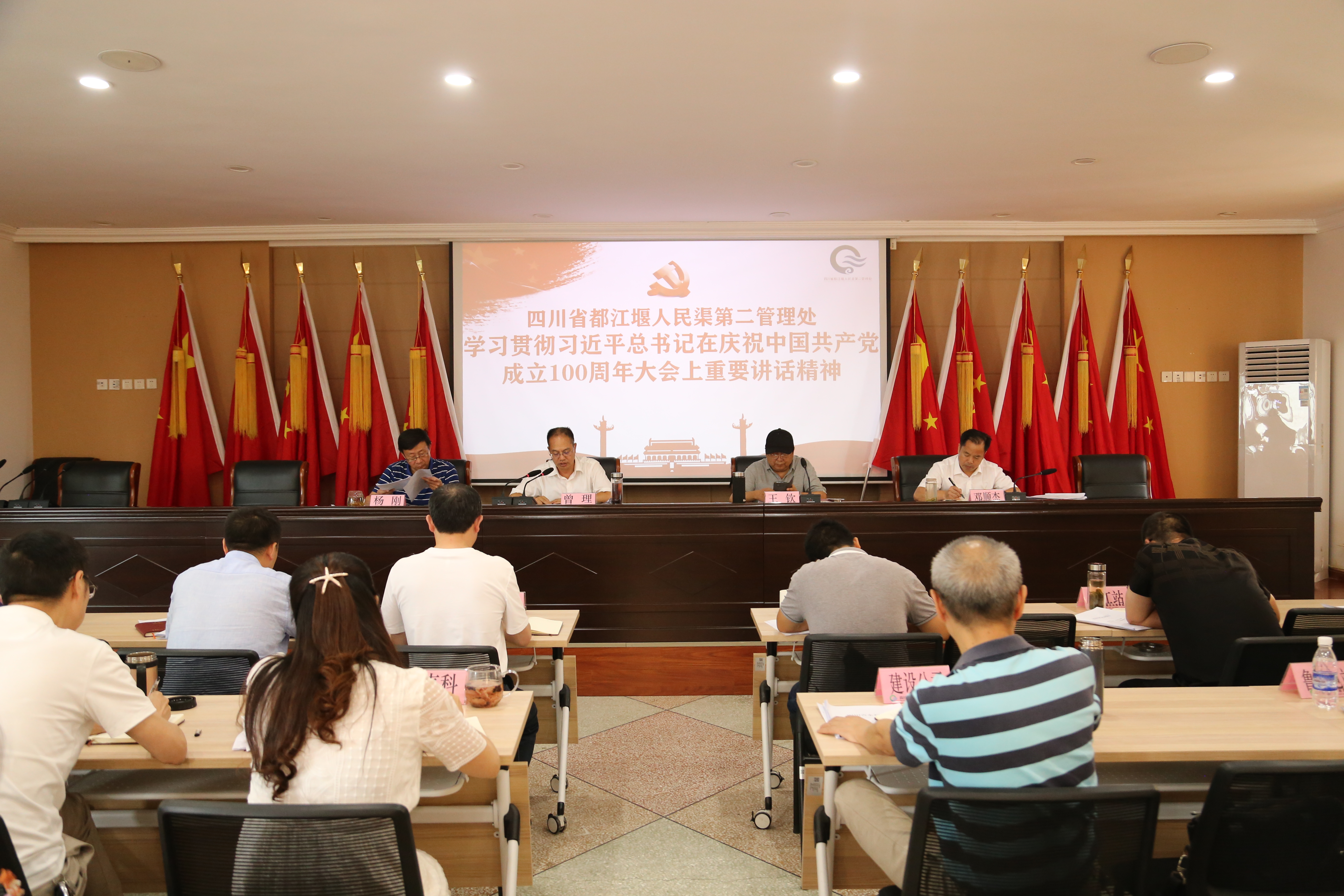 按照水利厅党史学习教育要求,人民渠二处重点部署习近平总书记在庆祝中国共产党成立100周年大会上的重要讲话精神的学习贯彻工作,处级领导带头学、率先学;党委会议、党支部 “三会一课”带动党员干部和职工全面学、反复学、集中学,党委理论学习中心组第五次(扩大)学习会邀请四川大学教授深入学习解读了习近平总书记在庆祝中国共产党成立100周年大会上的重要讲话精神,重点讲解了“3个伟大光荣”“4个伟大成就”“32字伟大建党精神”“9个必须”和“1个号召”的丰富内涵;青年理论学习小组深入学、拓展学,引导干部职工吃透精神实质,确保学习取得实效。