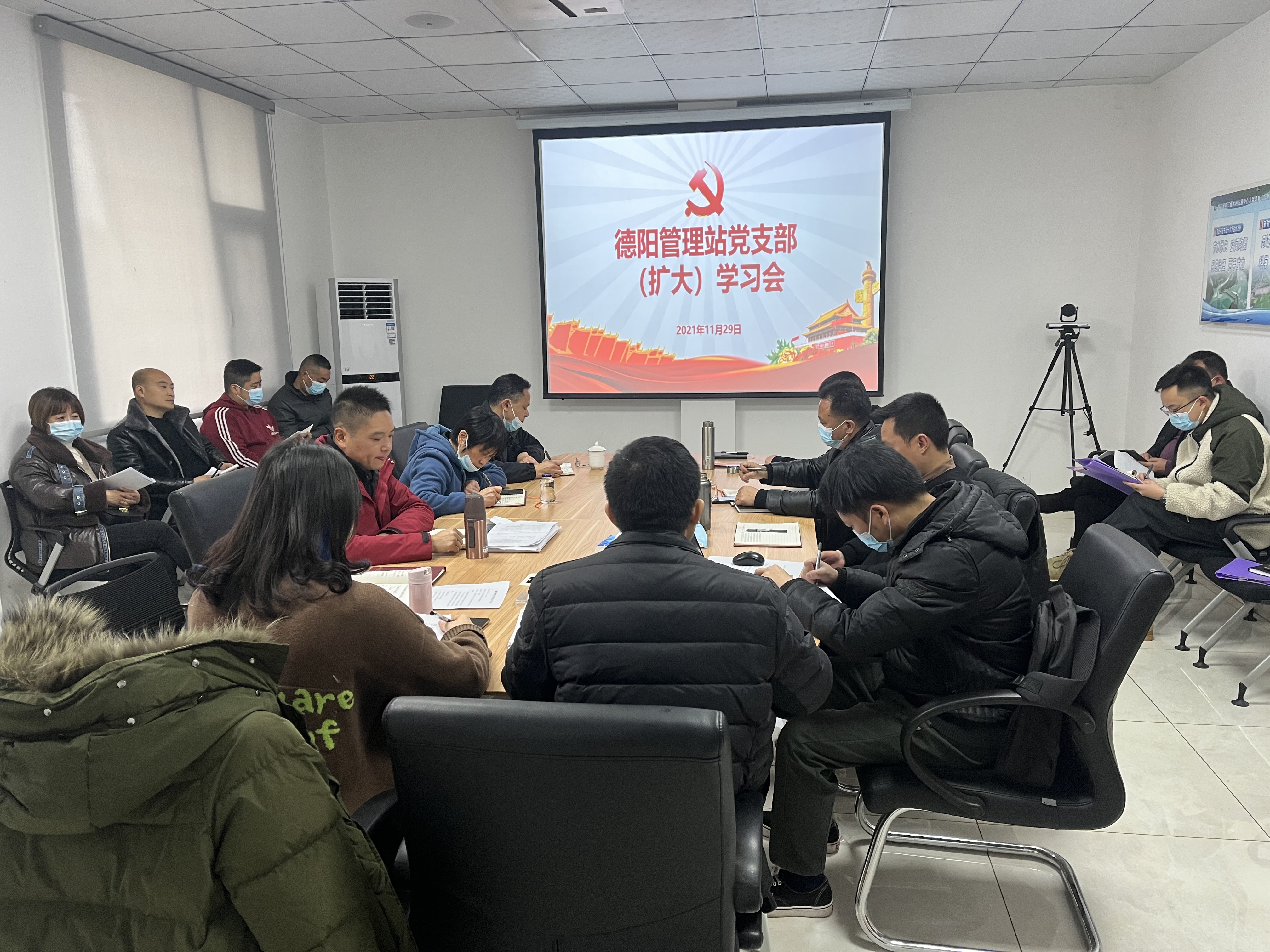 为深入推进党史学习教育走深走实,切实学习贯彻党的十九届六中全会精神,大力弘扬红旗渠精神,坚决贯彻厅党组“3226”总体工作思路,德阳管理站党支部于11月29日召开党支部扩大会议暨“新征程上有我”专题组织生活会。支部全体党员、工段长、青年理论学习小组代表参加会议。