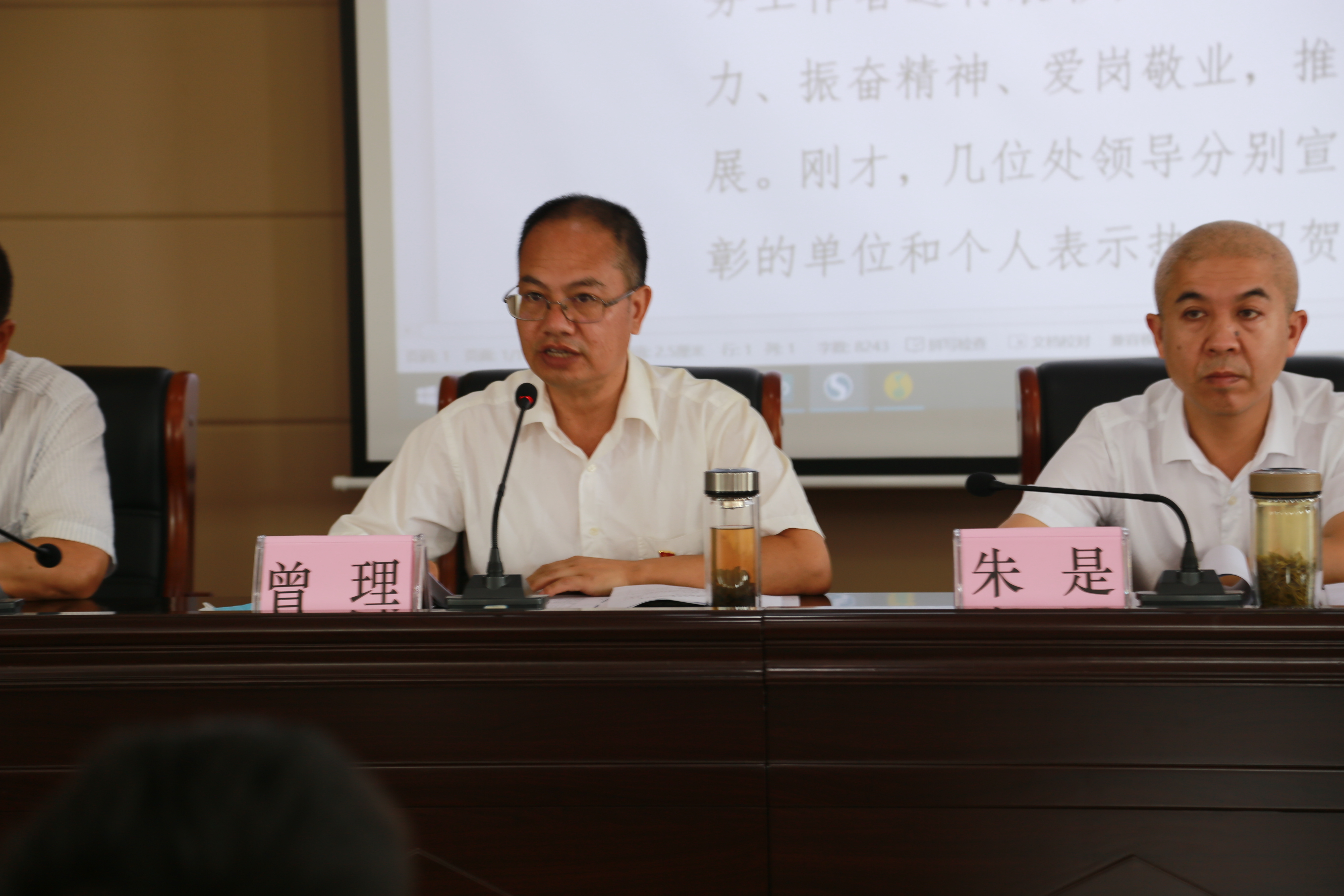 人民渠二处处级干部、处属各支部书记、支部委员及受表彰人员参加大会。