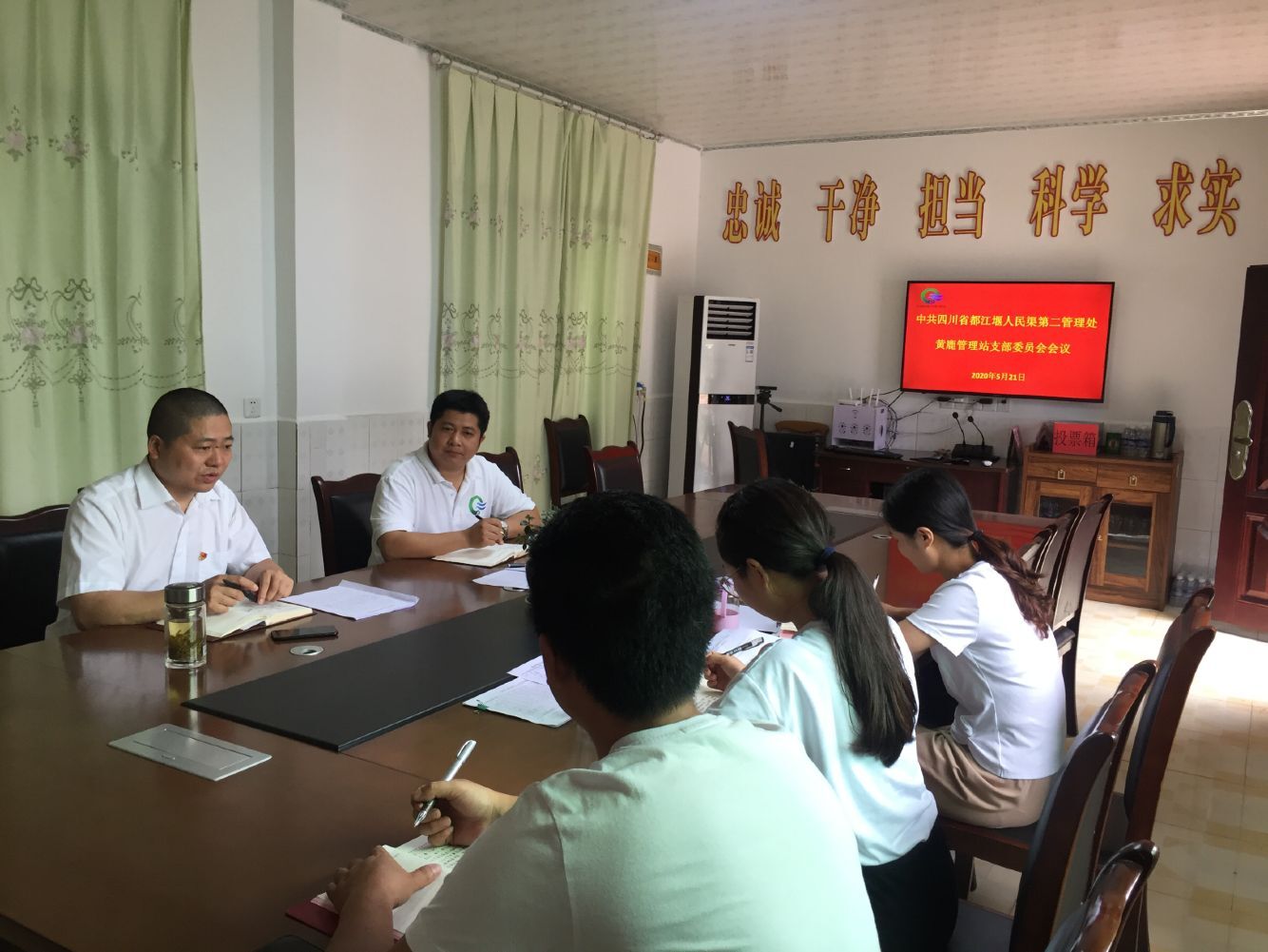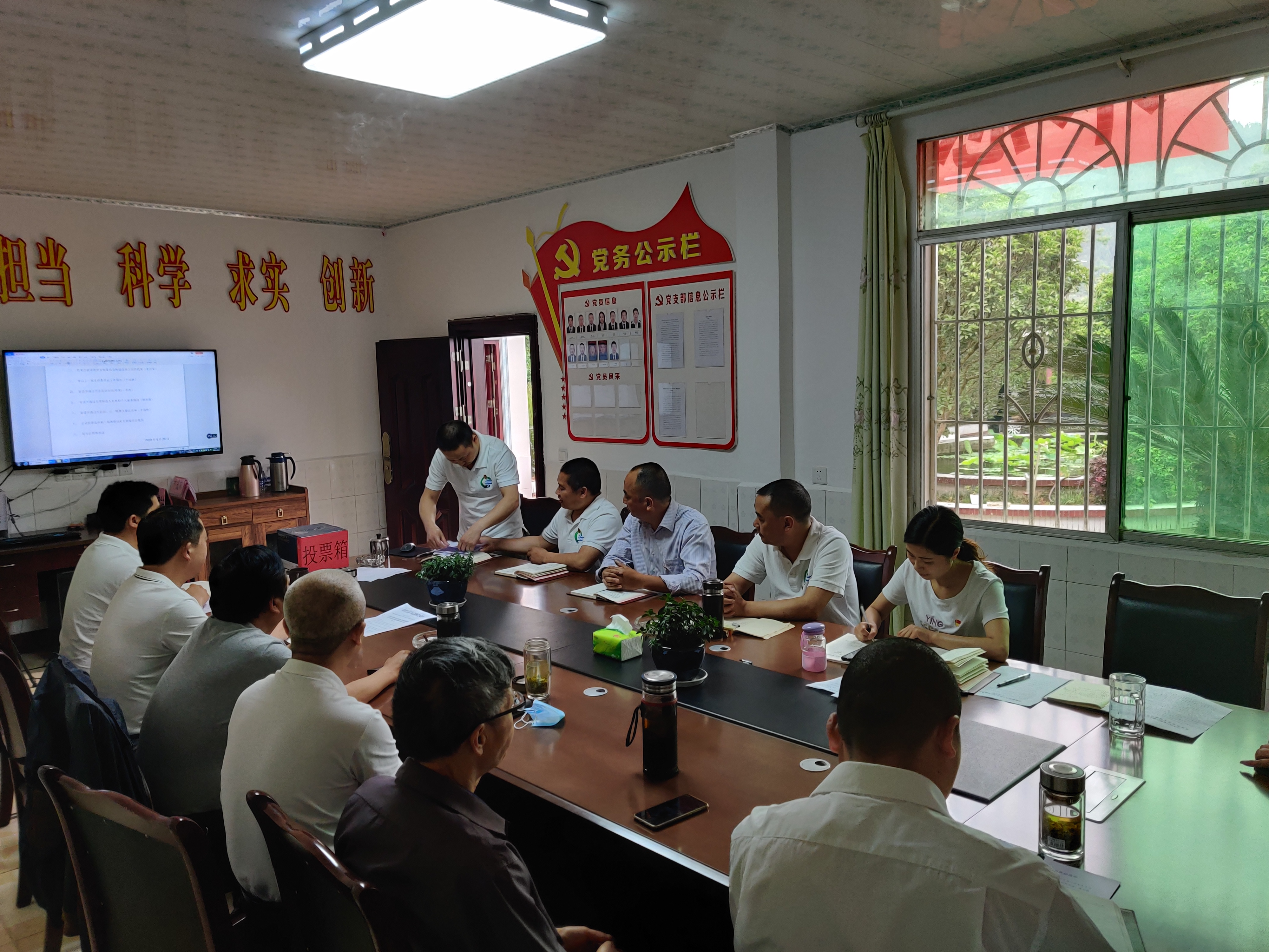 王钦书记向与会党员分享了凉山州扶贫工作体会,指出中国共产党的领导是中国特色社会主义最本质的特征,此次新冠肺炎疫情防疫让我们深刻认识到中国特色社会主义的制度优势,中国正走在“强起来”的路上,基层党支部应该抓好支部建设,建好战斗堡垒,党员个人应起好先锋带头作用,把党的初心和使命落到每个党员肩上,把大的“中国梦”和党员的“中国梦”结合起来,切实做好防汛抗旱工作、水污染防控、安全生产等工作,防止形式主义和官僚主义出现。