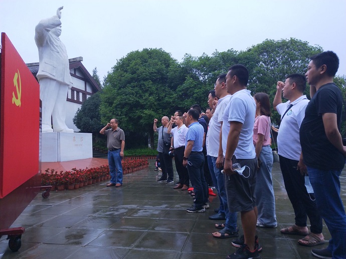 22日上午,大家来到仪陇县马鞍镇琳琅山朱德元帅故里。魏光伟同志带领大家在朱德汉白玉雕像前重温入党誓词。面对鲜红的党旗,大家紧握拳头庄严宣誓“为共产主义奋斗终身,随时准备为党和人民牺牲一切……”,洪亮的宣誓声,是对党的光辉历程和不变初心的重温和铭记。