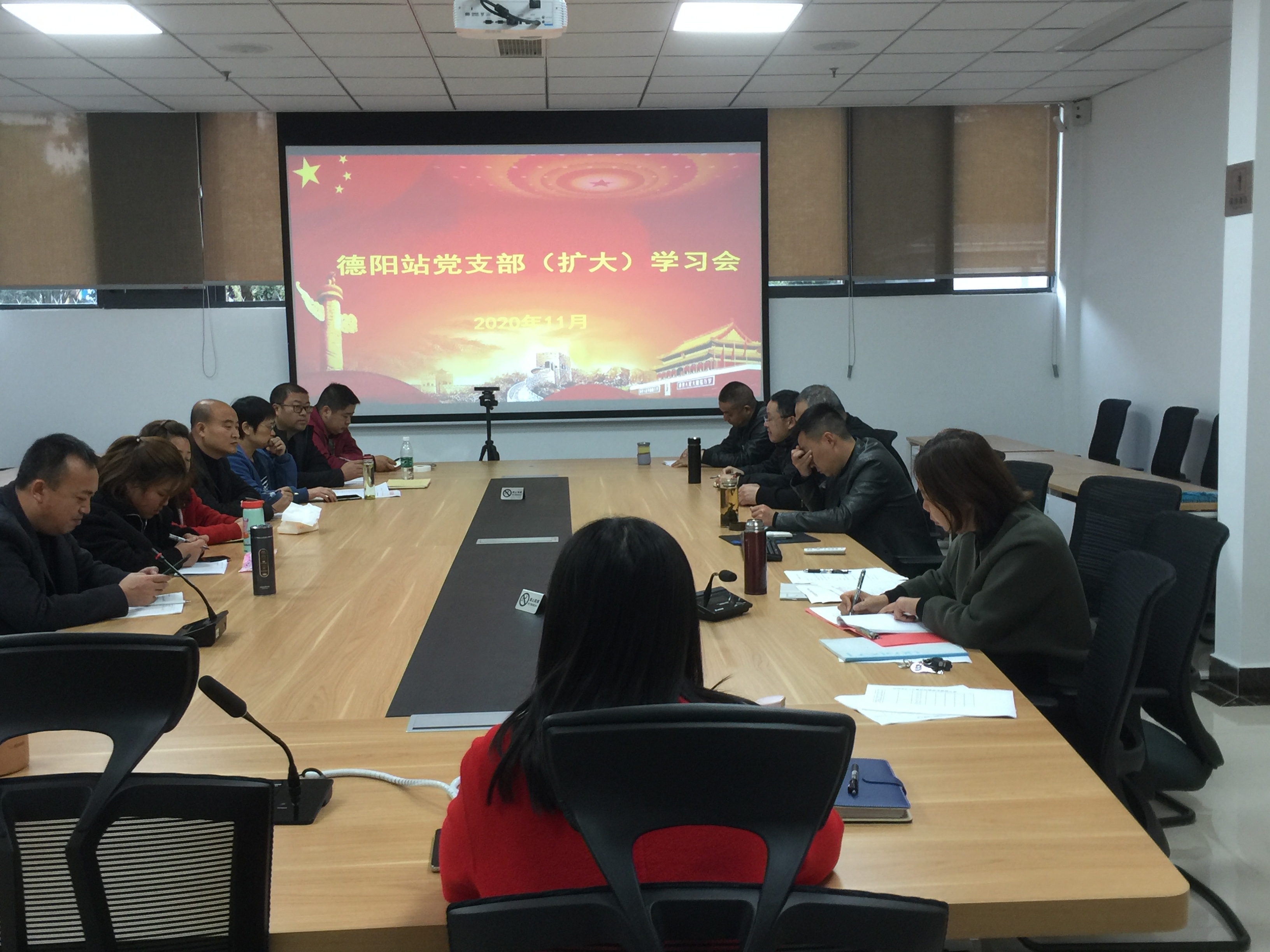 2020年11月20日上午,德阳站全体党员、入党积极分子、工段长、青年理论学习小组线下学习成员在站机关会议室召开了党支部(扩大)学习会暨青年理论学习会,支部副书记王雪主持会议。