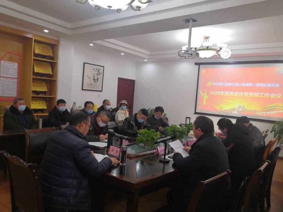 为加强离退休党支部建设,提升离退休党支部工作水平,做好对离退休党员的关心和服务,2021年1月22日,人民渠二处在金山管理站召开2020年度离退休党支部工作会议。党委书记、处长曾理,党办主任李万军、离退科科长罗先君、处属5个退休党支部的支部书记和委员参加会议。
