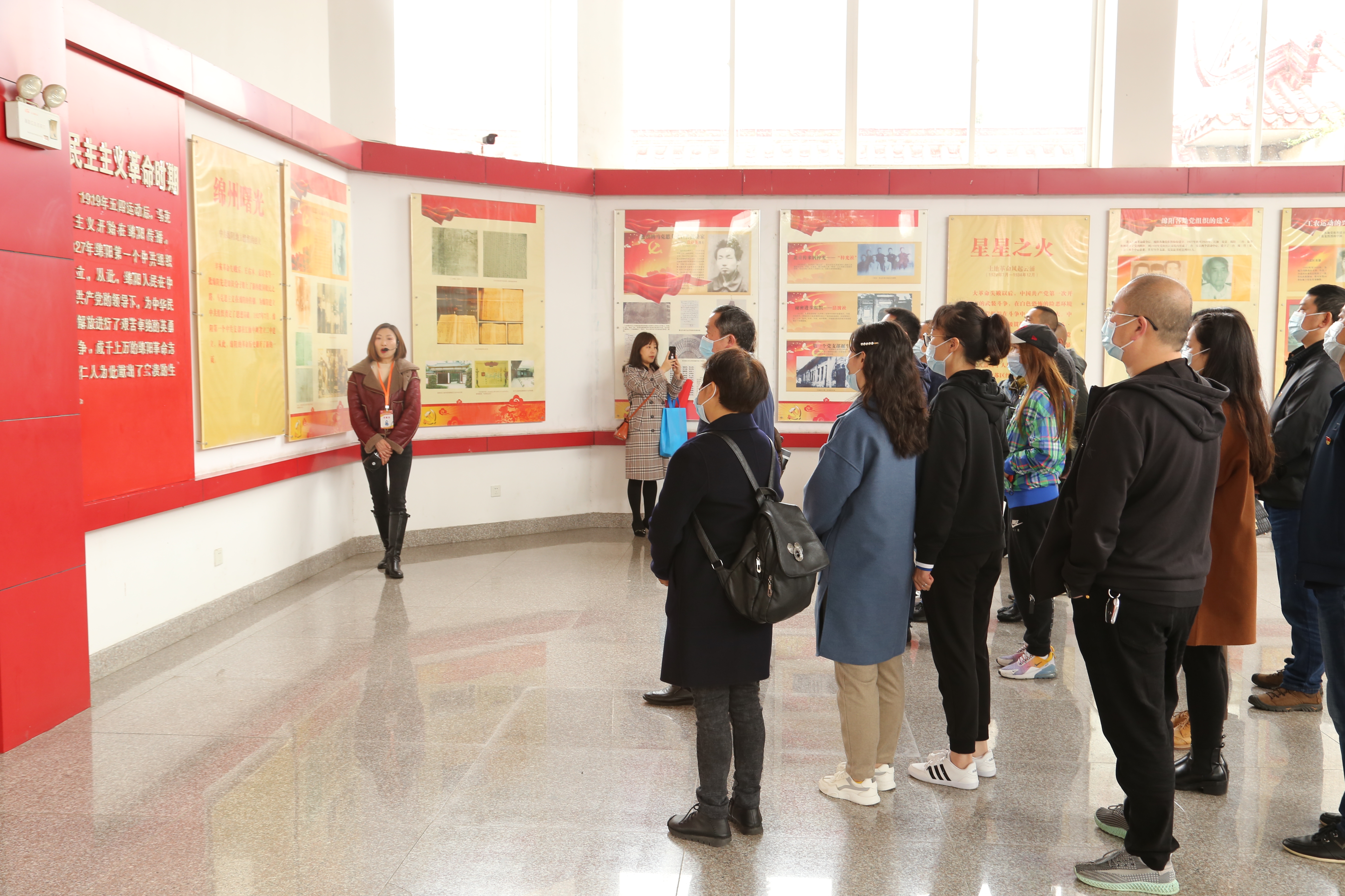 绵阳市南山烈士陵园烈士纪念碑前,全体人员肃穆静立,默哀三分钟,敬献鲜花寄托哀思,重温入党誓词。在纪念馆内,大家聆听讲解员讲述从新民主主义时期到抗日战争时期到解放战争时期再到如今,革命先烈与英雄楷模为民族解放和国家独立而不畏牺牲的英勇事迹。在纪念广场,四个支部用“一所缺笔少纸的学校”“抗日名将吉鸿昌”“周恩来订立修养七则”“周恩来的三场会议”党史小故事,诠释了为人民服务的政治立场和高尚的人格精神。活动途中支部开展了红歌传唱。