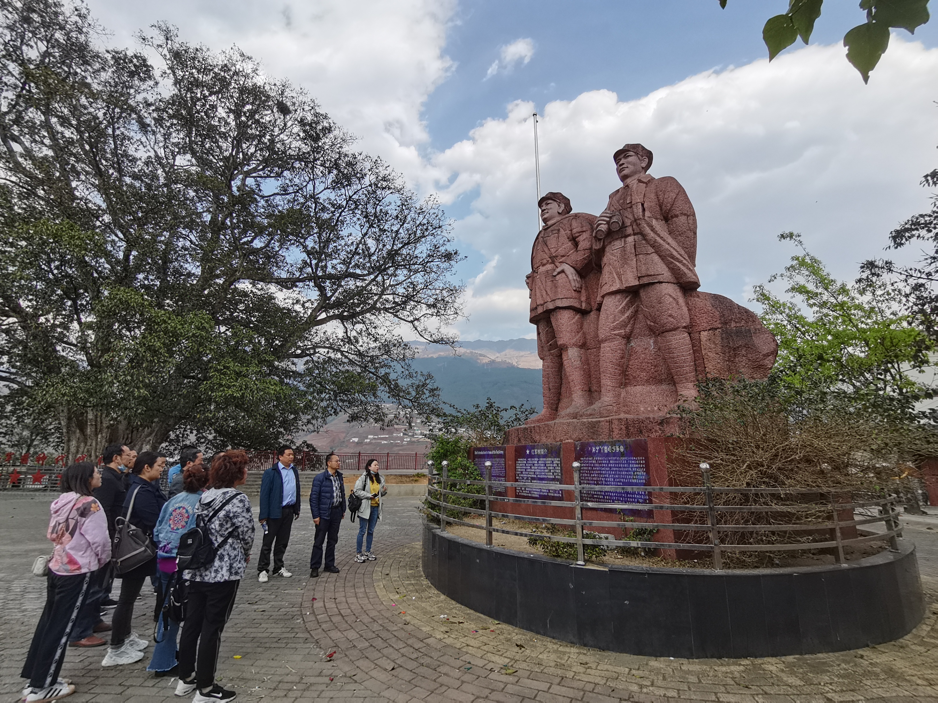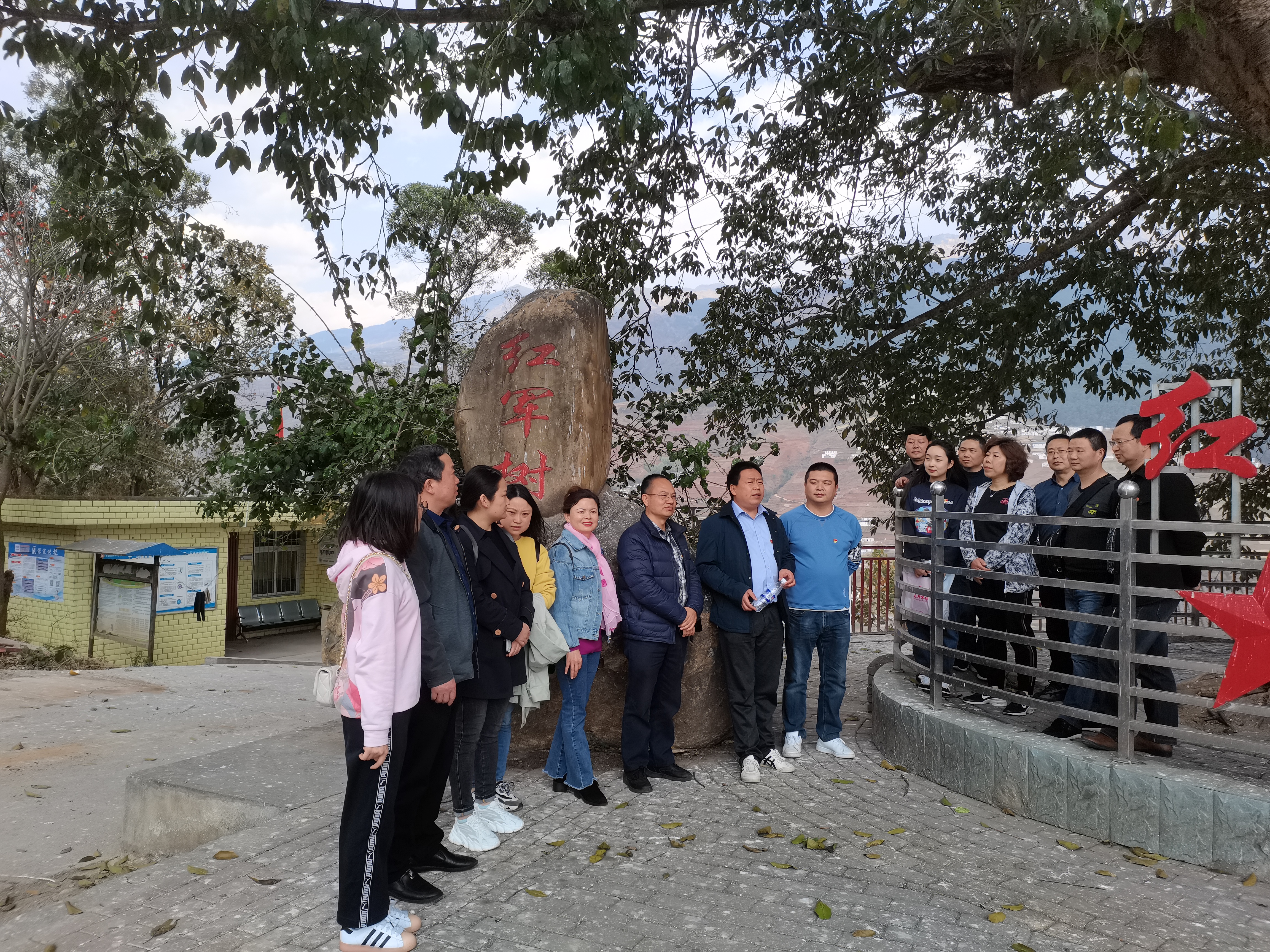 我们在红军百丈关战役纪念馆前合影;参观彝海结盟纪念馆,通过观赏当年留存下的一件件实物,阅读彝海结盟过程中的重大事迹,我们深刻感知到了民族团结、军民团结的伟大力量;在红军树下,我们倾听扶彝干部张林同志讲诉自己的扶贫事迹,他说在普格开展水利扶贫工作最深刻的感受是锤炼了自己的品格,在工作中始终保持谦虚的态度,以细心贴心服务每一位群众,以持之以恒久久为功的坚持推动每一项工作任务。