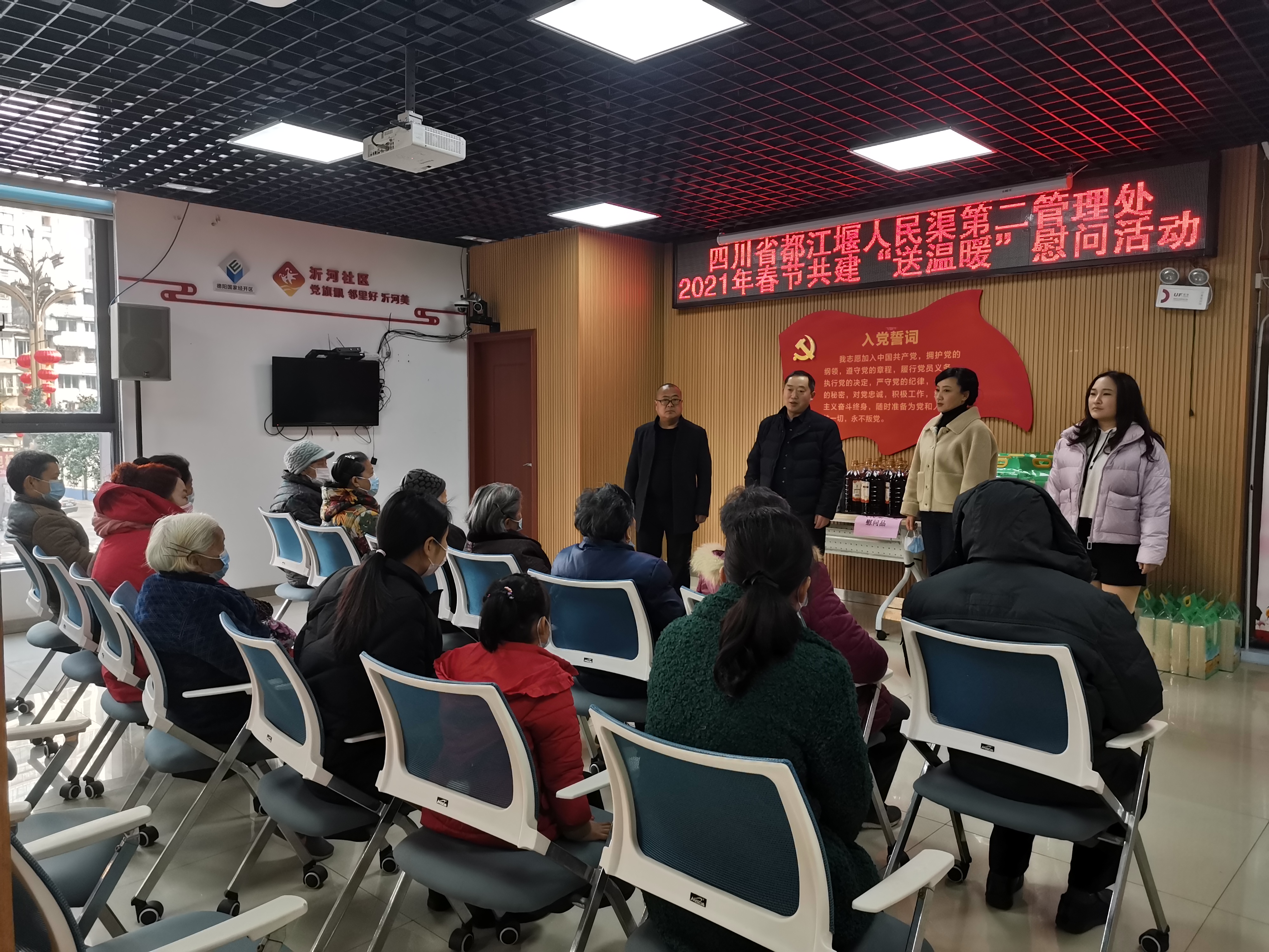 春节将至,年味渐浓。为践行省级最佳文明单位示范带头作用,积极履行社会责任,2021年2月7日,人民渠二处联合德阳市旌东街道沂河社区开展社区共建“送温暖”慰问活动,与困难群众共享全面建成小康社会的成果。