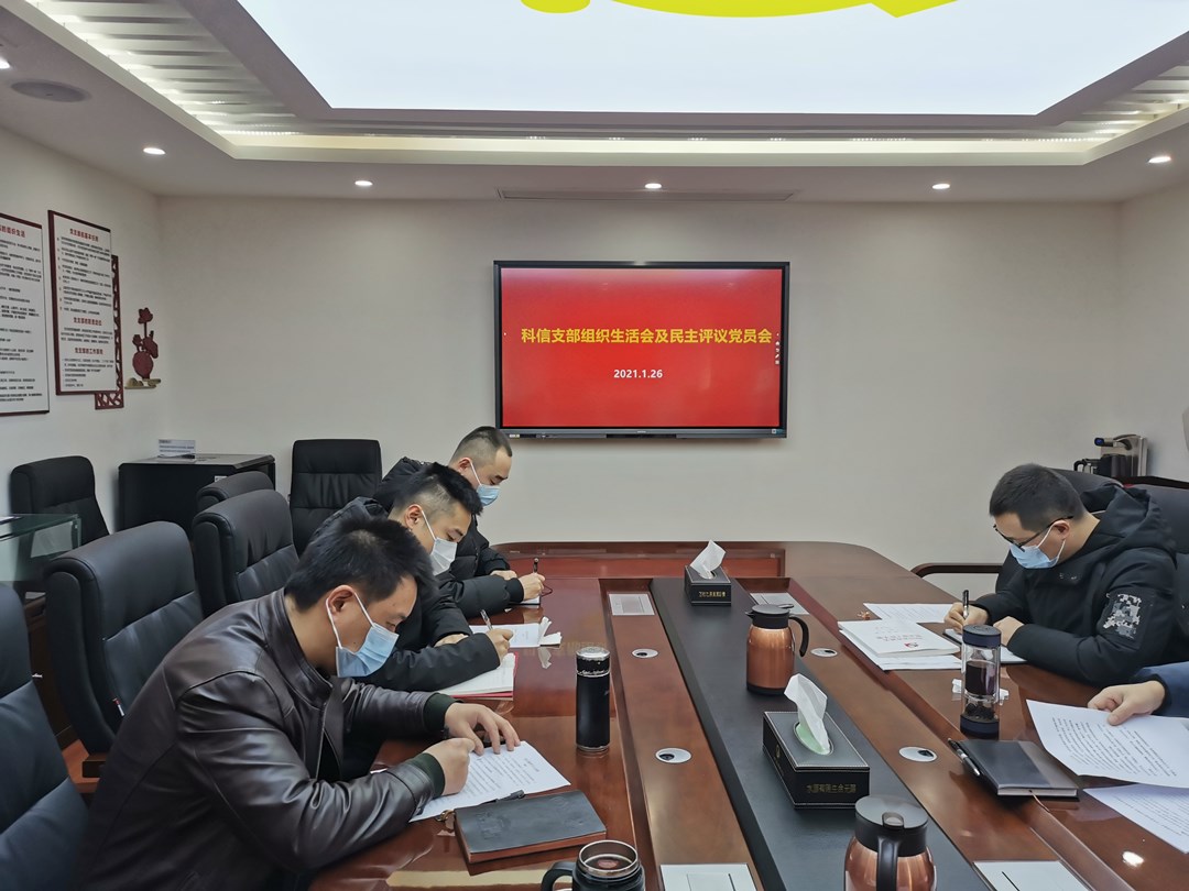 1月26日,科信党支部开展2020年度组织生活会及民主评议党员会,工会主席邓顺杰、党办主任李万军以及支部全体党员参加会议。会议由陈川书记主持。