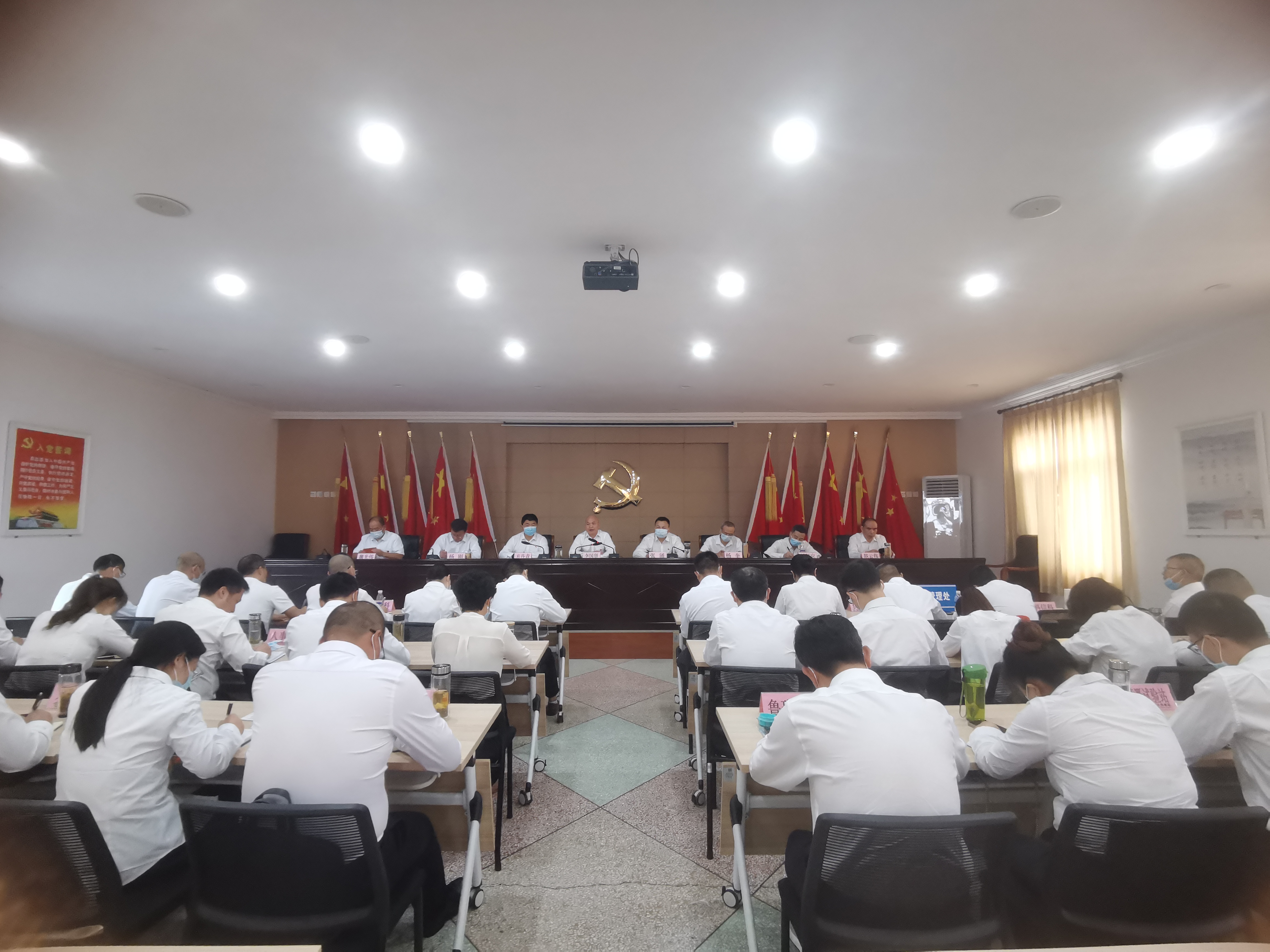 8月5日上午,在都发中心深化干部队伍作风整顿抓整改重巩固看成效推进会暨工作作风专项检查启动视频会议后,人民渠二处及时贯彻落实中心会议精神,对全处作风整顿工作进行安排部署。处级领导、科室(站)负责人、干部职工代表参加会议。