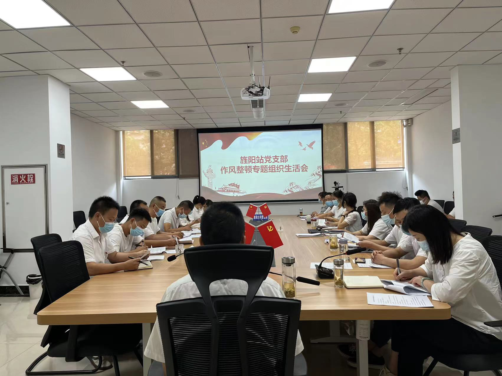 会议通报了近期站四不两直检查情况并要求:一要强化思想认识,提高政治站位,充分认识作风建设的必要性和重要意义;二要坚持作风整改促进工作开展,将作风整顿和防汛抗旱工作结合,严格遵守防汛值班纪律,强化服务意识,为灌区榜样建设打造一支“水利铁军”;三要严格遵守上下班纪律,请销假制度及会场纪律;四要严格遵守疫情防控措施,履行个人防控义务做好疫情常态化管理工作。