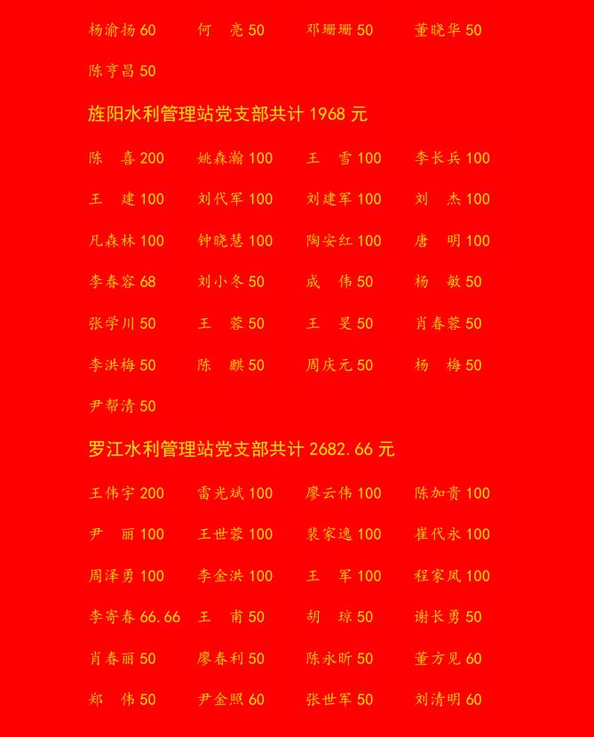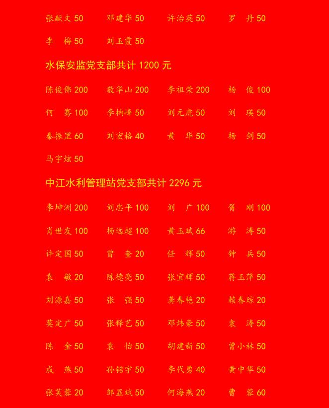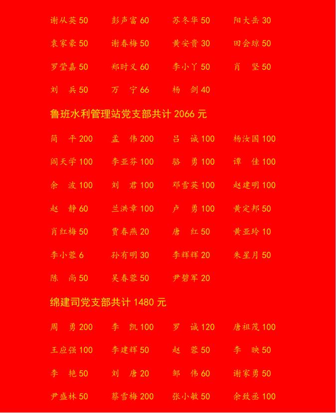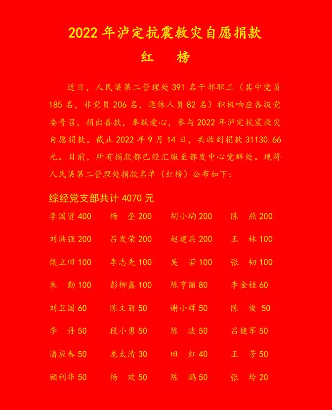 人民渠二处2022年泸定抗震救灾自愿捐赠红榜