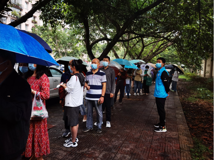 为控制疫情扩散,打好防控攻坚战,在国庆假期到来之际,按照四川省德阳市疫情应急指挥部的统一部署,德阳市于9月22日开展全员核酸检测,旌阳水利管理站党支部组织党员、职工充分发扬志愿精神,响应中心和处党委疫情防控相关号召,积极主动参与地方防疫工作,组成志愿者服务队投身一线疫情防控,配合站驻地社区开展全员核酸检测工作。