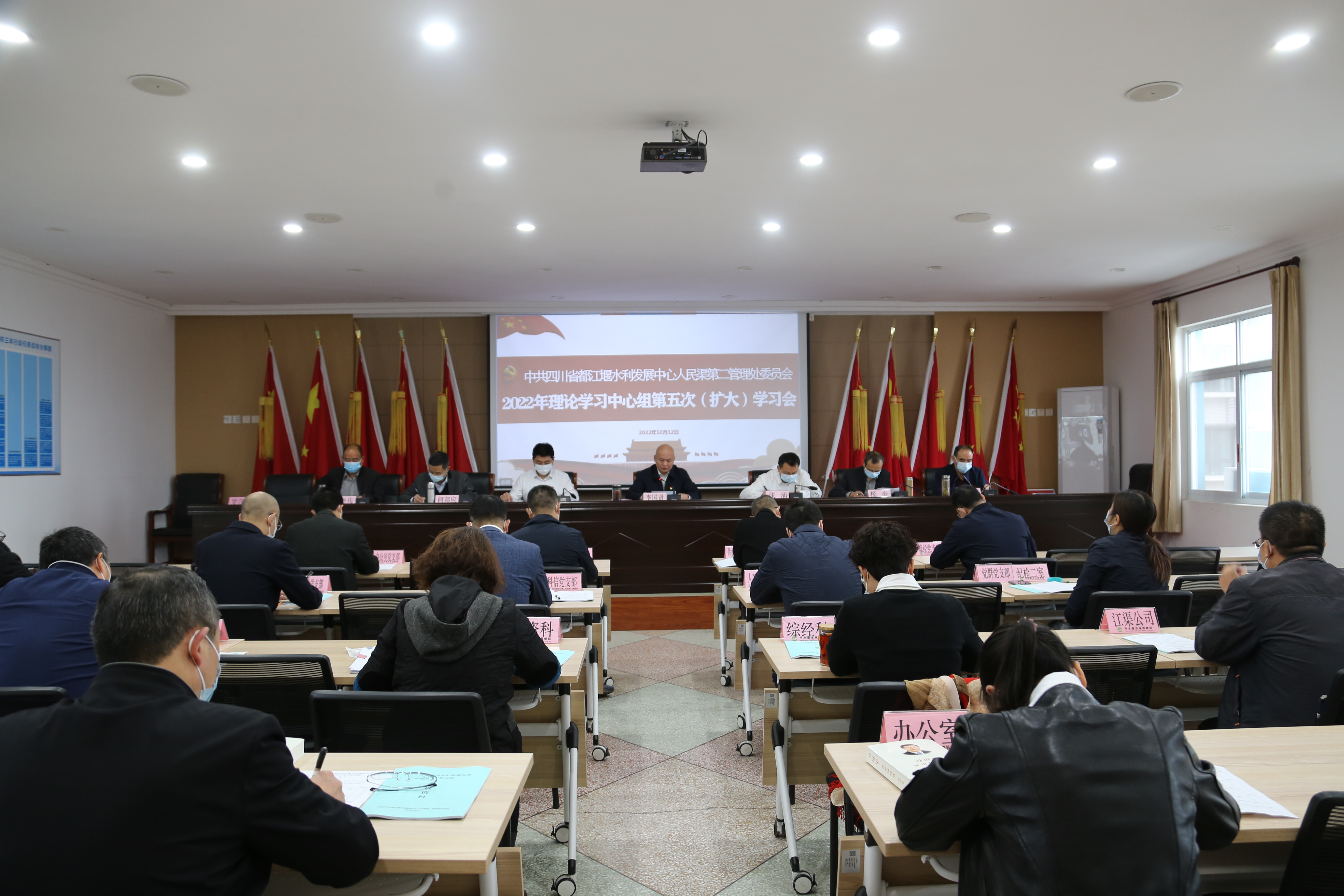 10月12日,人民渠二处召开2022年党委理论学习中心组第五次(扩大)学习会,对“三新”理论、意识形态、安全生产进行专题学习,党委委员、处级干部、支部书记、科室负责人,基层单位中层干部参加,党委书记、处长李国贤主持会议。会议通过视频形式召开。
