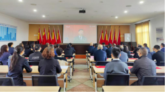 在人民渠第二管理处六楼会议室,包括党委委员、处级干部在内的近50名党员干部、职工群众、团员青年整齐着装,集中收看中国共产党第二十次全国代表大会开幕会直播,现场气氛热烈,大家难掩激动心情。