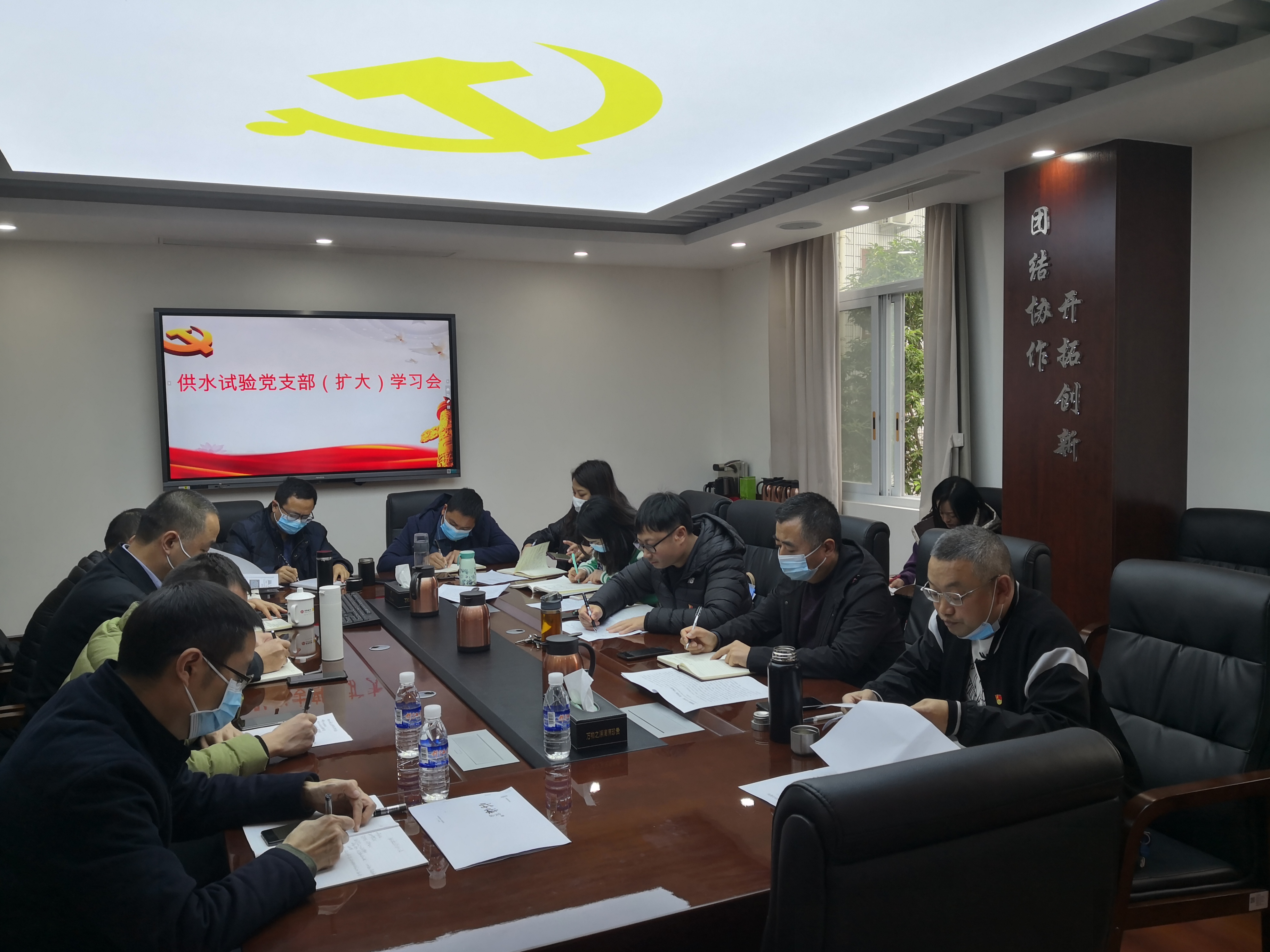 为深入学习贯彻习近平新时代中国特色社会主义思想,准确、全面理解和把握党的二十大精神,进一步强化政治引领,激励党员干部职工在新时代做敢担当、有作为的水利人。11月25日,供水试验党支部在处机关党员活动室组织召开支部(扩大)学习会,集中学习党的二十大会议精神、《习近平谈治国理政(第四卷)》节选内容、2022年理论学习中心组第五次(扩大)学习会精神、《关于进一步激励干部新时代新担当新作为的实施意见》等。