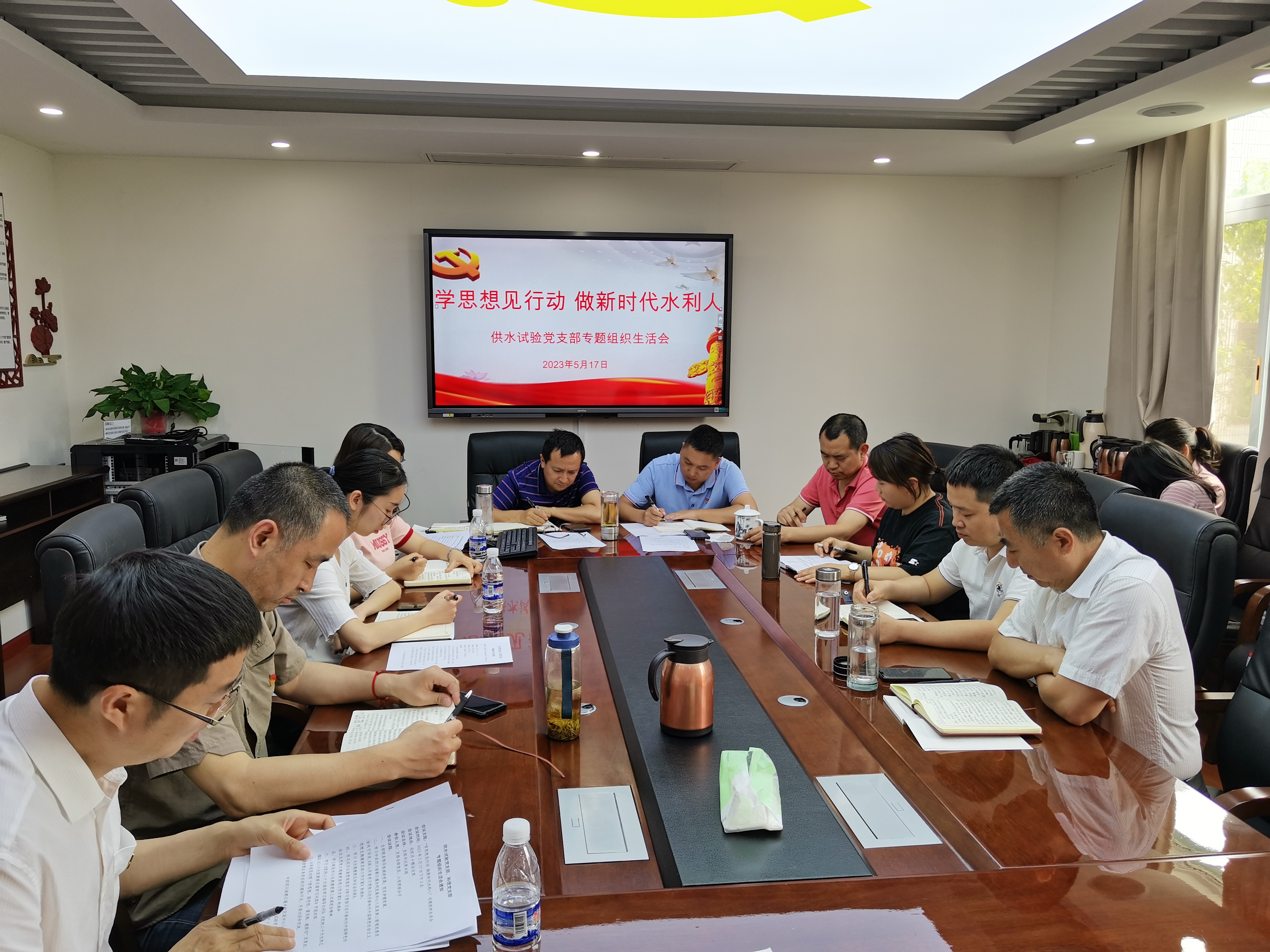 为推动学习贯彻习近平新时代中国特色社会主义思想主题教育向纵深发展,5月17日,供水试验党支部组织召开“学思想见行动 做新时代水利人”专题组织生活会。会议由支部书记李兴刚主持,支部党员、入党积极分子参加,支部联系领导、副处长张涌到会指导。