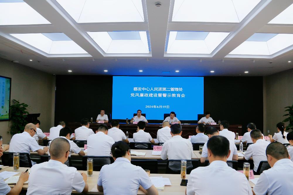 6月19日,人民渠第二管理处召开2024年党风廉政建设暨警示教育大会,总结2024年上半年党风廉政建设工作成效,安排部署下半年工作任务。会议由党委委员、副处长张涌主持,党委书记、处长罗厚攀参加会议并讲话。