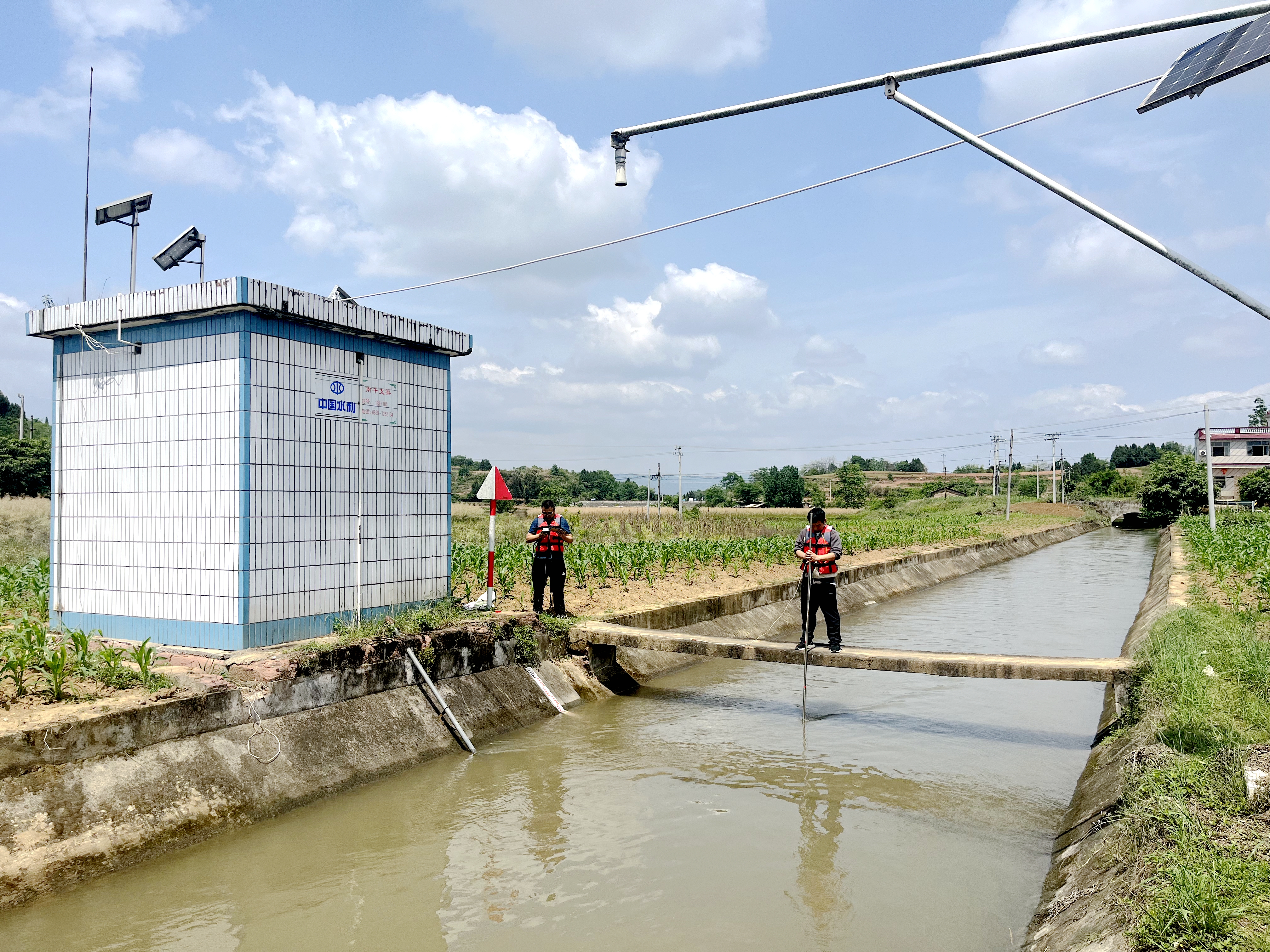 脱下“志愿蓝”,着上“安全红”,备好测速仪……位于人民渠七期干渠柏树支渠测流点上,中江水利管理站水利青年正在进行水文校测,以便更精确的调度水资源服务,做好“双抢”工作。